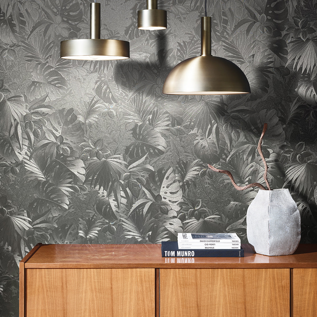 Пищни, реалистично изобразени листа на любими растения плътно покриват този луксозен флорален тапет. Детайлите са така умело изваяни, че усещането за „градска джунгла“ - вече обуздана, и все пак пълна с енергията на жизнените сокове, е съвсем реално.