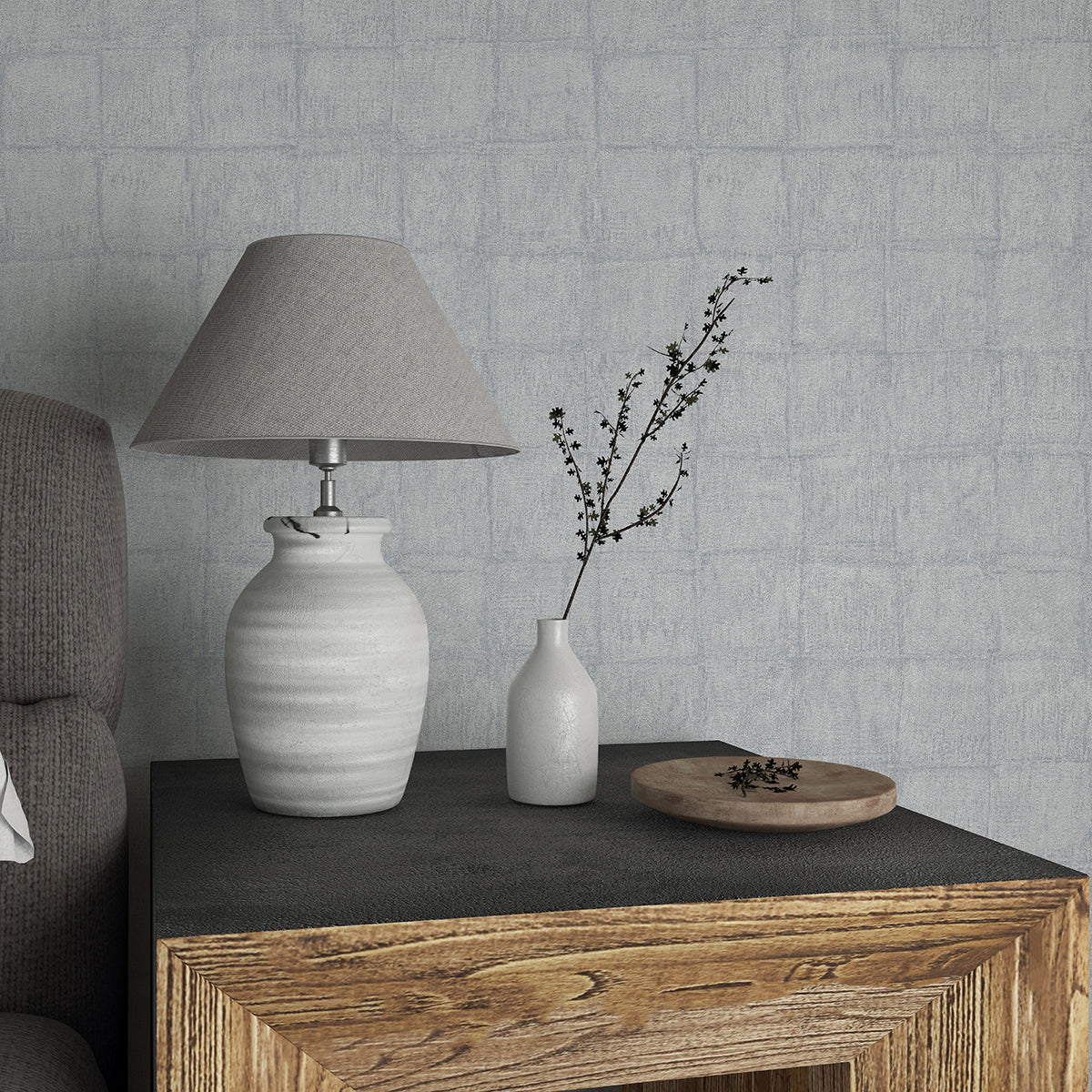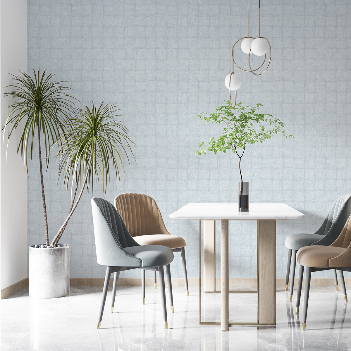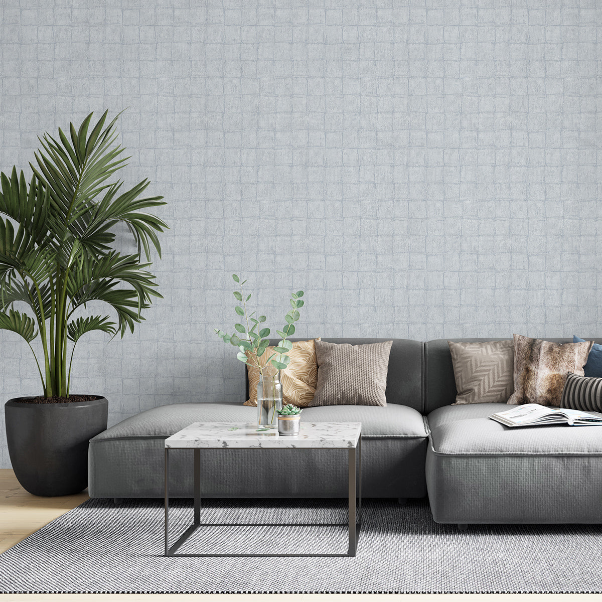 Текстилен ефект Тапет Мазилка Квадрати Сиво-синьо Ботаника