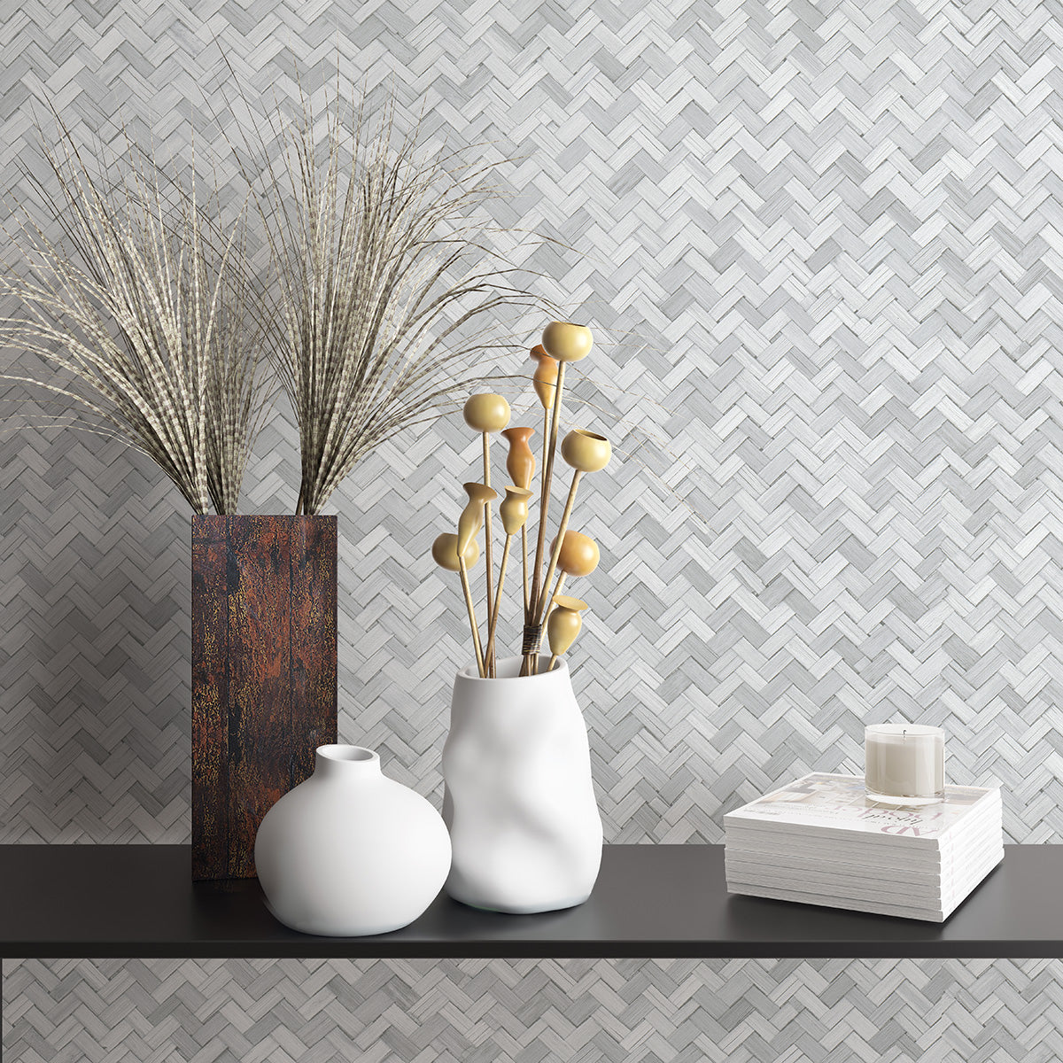 С визия на фино преплетен бамбук във формата на рибена кост този тапет с графична структура и естествени цветови нюанси перфектно допълва концепцията за заедност с природата. Натурално и семпло, земно и създаващо уют с мекотата на тоновете и структурата на естествени, растителни материи.