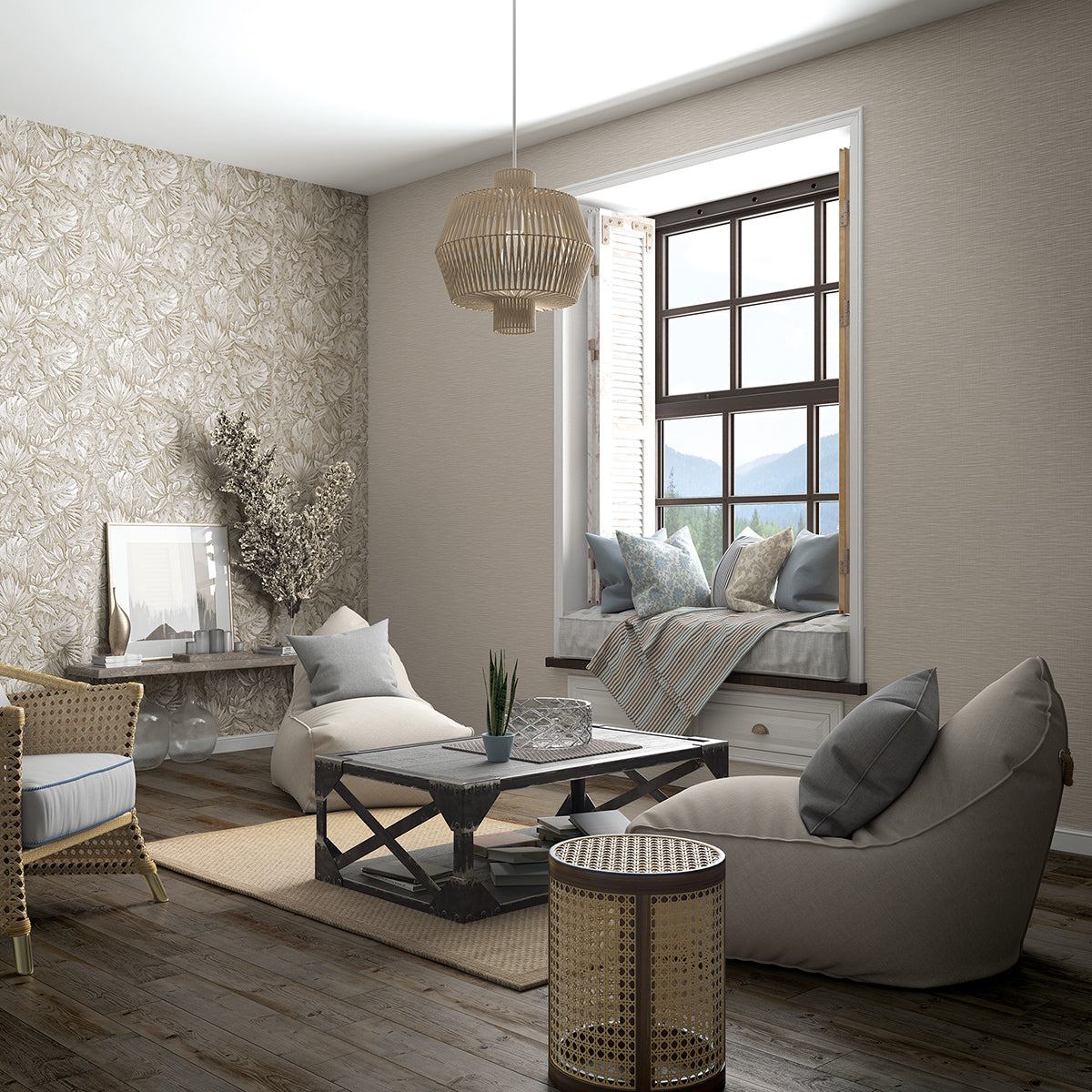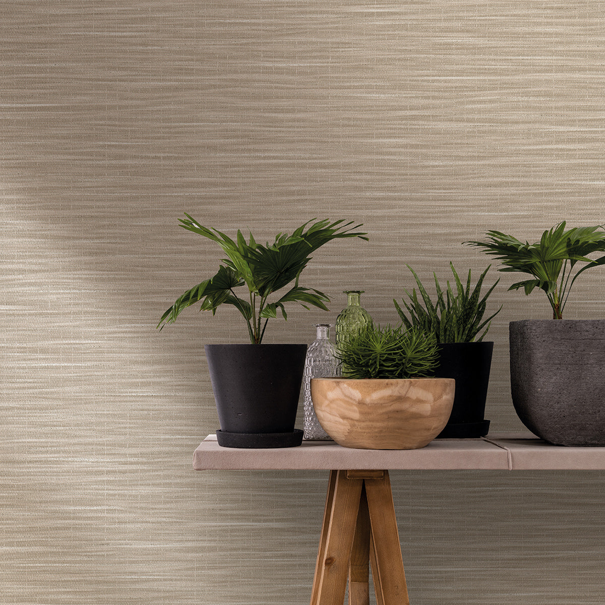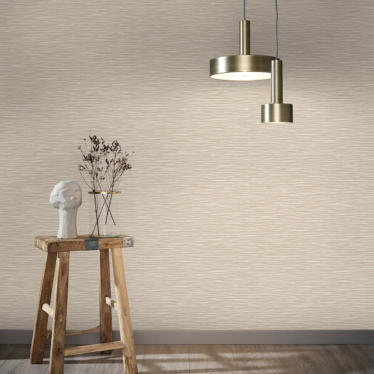 Оригинален едноцветен тапет със структура на груб ленен плат, подходящ за комбиниране с флорални и геометрични тапети от колекцията.