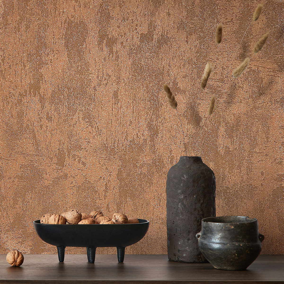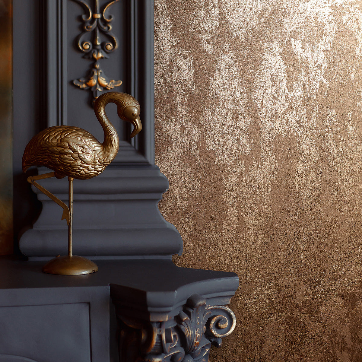 Луксозен копринен ефект Тапет Мазилка Медно златно City Romance