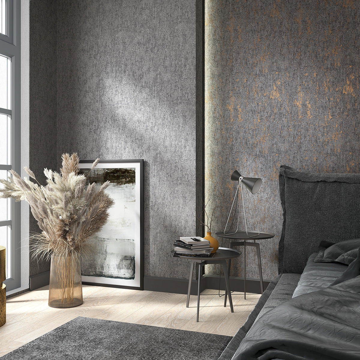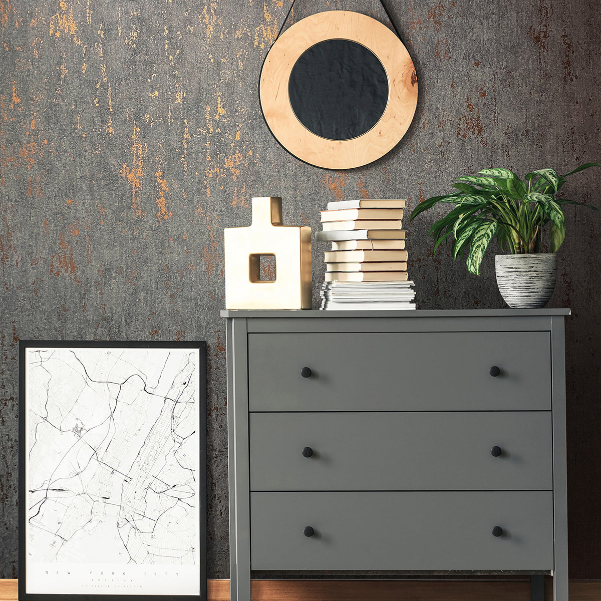 Луксозен Тапет Винтидж мазилка Черно-мед City Romance