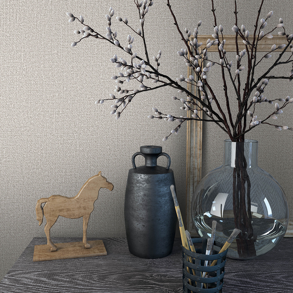 Стилен едноцветен тапет с топла структура на текстилна материя. Визията и усещането за облечена в плат стена създава чувство за уют и комфорт и носи елегантността на естествените материи. Неутралната цветова гама дава възможност за лесно съчетаване с мебели и аксесоари, както и за комбиниране с тапети с мотиви от колекцията.