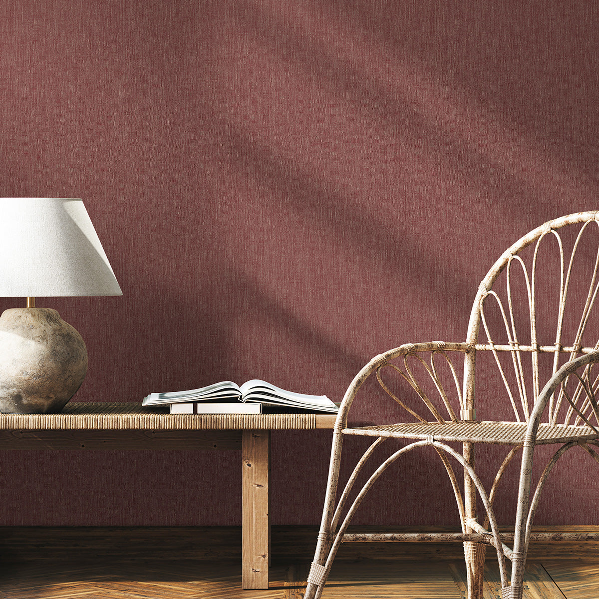 Едноцветен флис тапет в нежен нюанс, подходящ за комбиниране с тапетите с мотиви от колекцията. Повърхността е гладка с принт, който визуално интерпретира текстил от естествена материя.