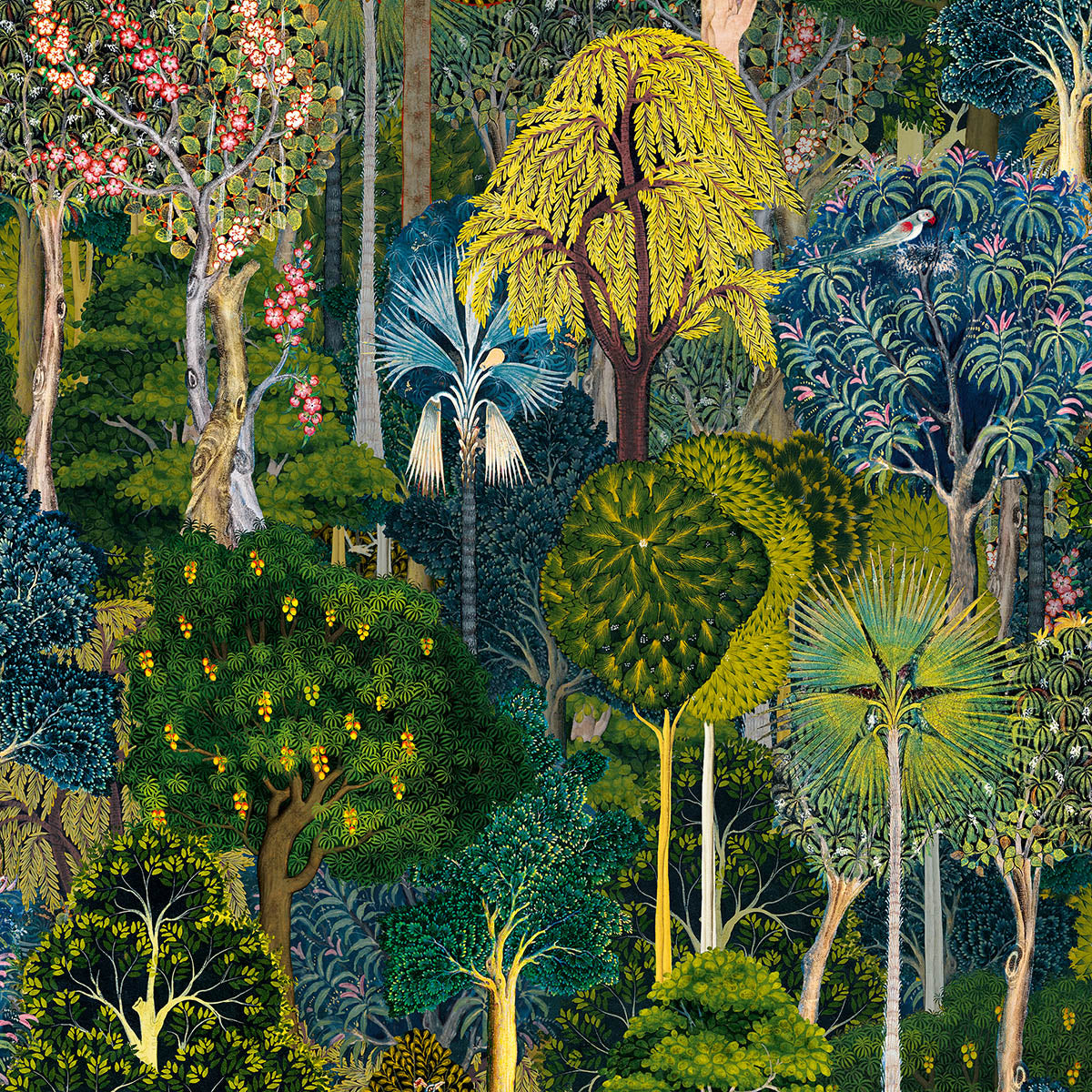 Този тапет в исторически стил, който умело съчетава елегантността на Англия и Индия, е забележителен акцент в колекцията. В силни зелено-сини или топли цветове, както и в монохромни нюанси като бежово, сиво или елхово зелено, този дизайн предлага прекрасен фон за различни стилове на живот.