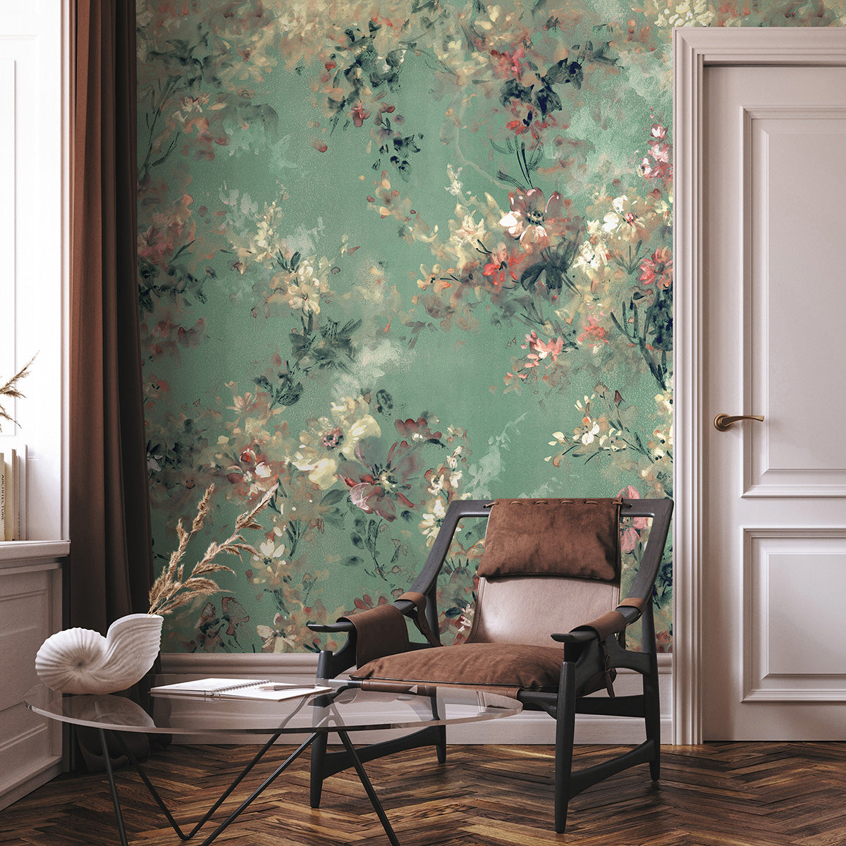 Тапет-Пано Акварелни Цветя Зелено 2.12х2.7 м City Romance