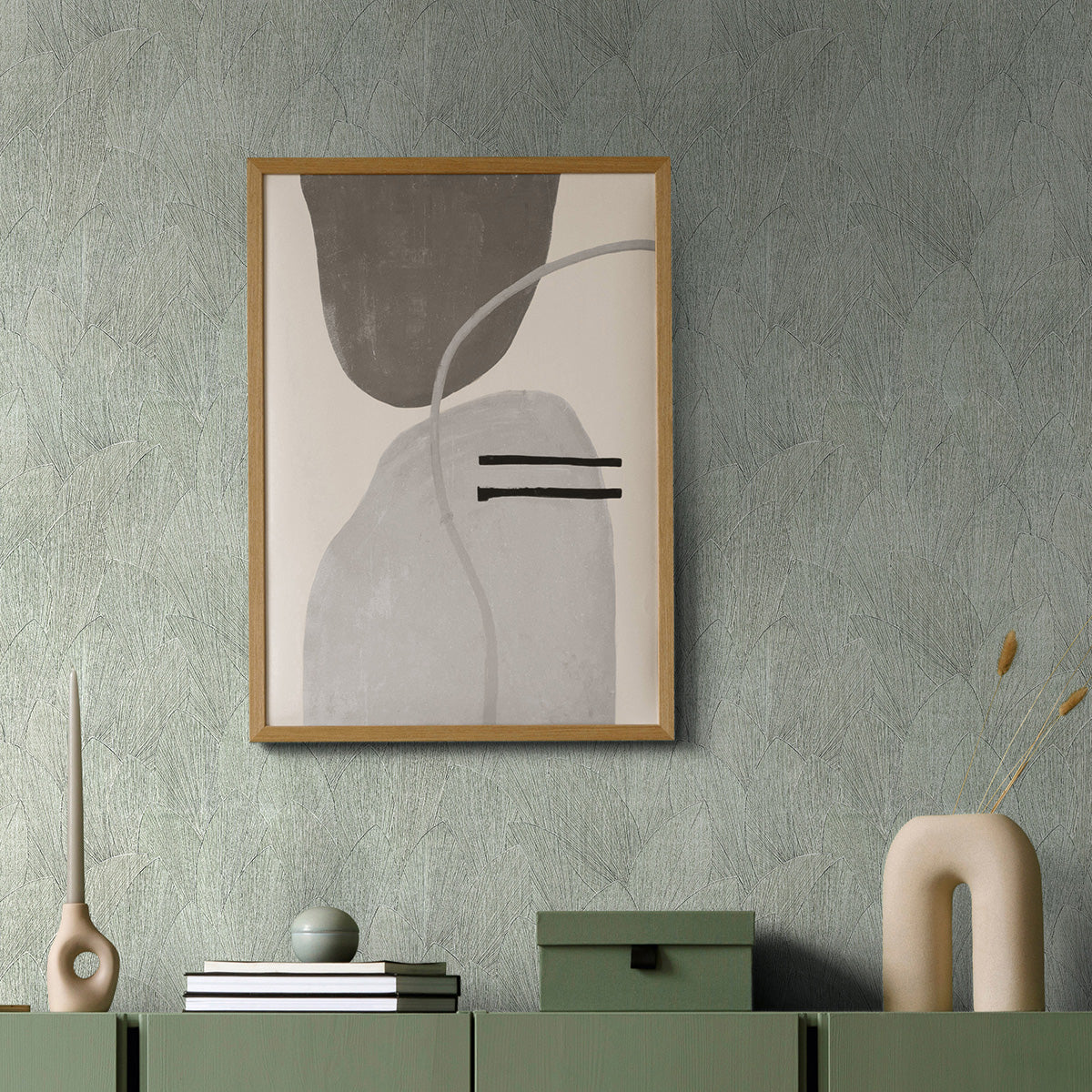 На пръв поглед едноцветен, този тапет елегантно раздвижва пространството с релефно очертани, застъпващи се форми на продълговати листа.