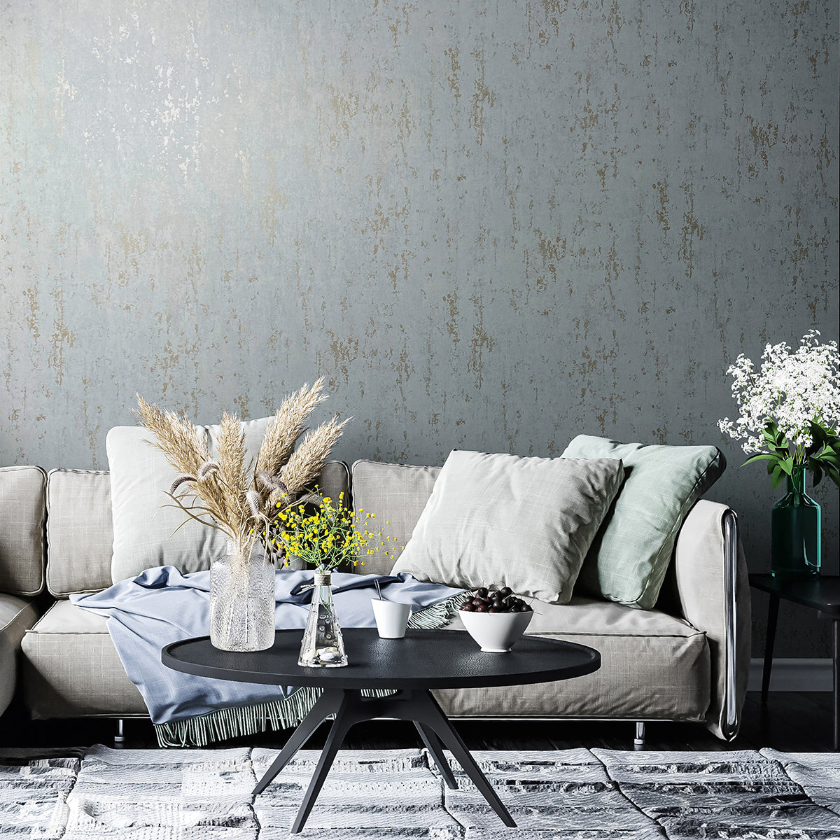 Луксозен Тапет Винтидж мазилка Бледо тюркоазено City Romance