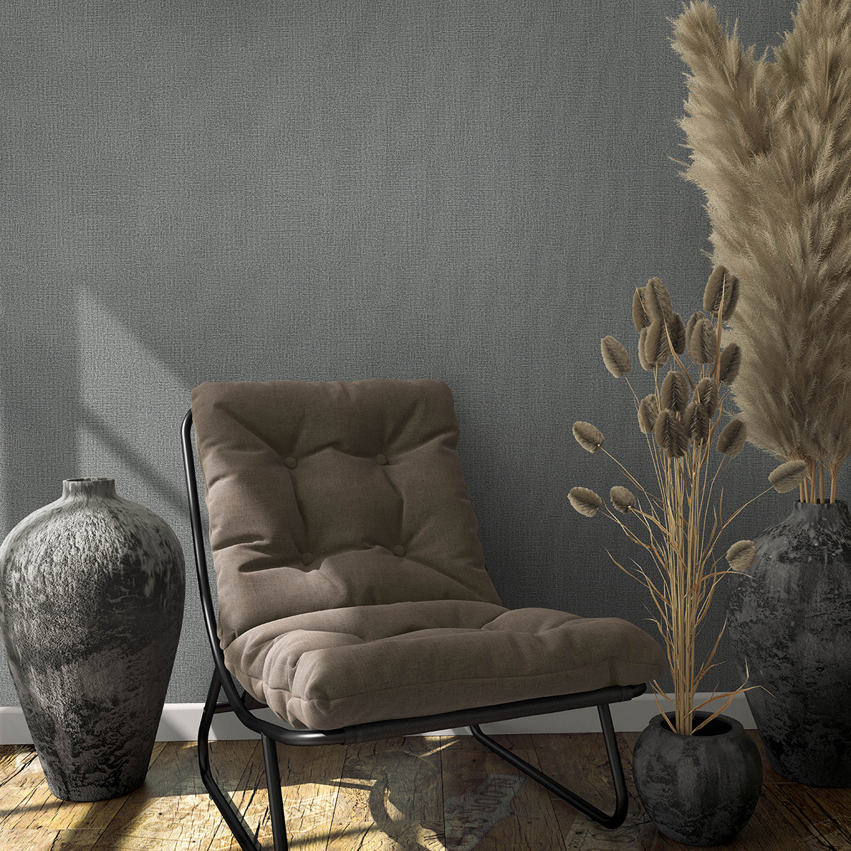 Текстилен ефект Тапет Плат Тъмно сиво Кумано