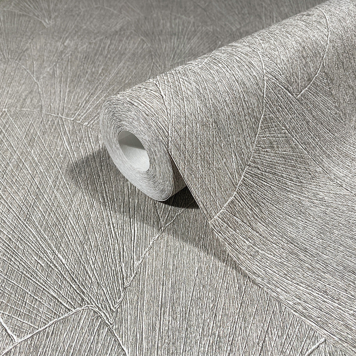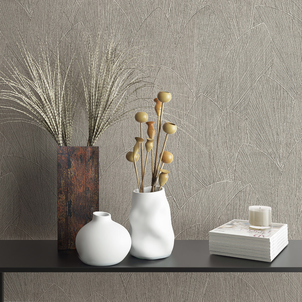 На пръв поглед едноцветен, този тапет елегантно раздвижва пространството с релефно очертани, застъпващи се форми на продълговати листа.