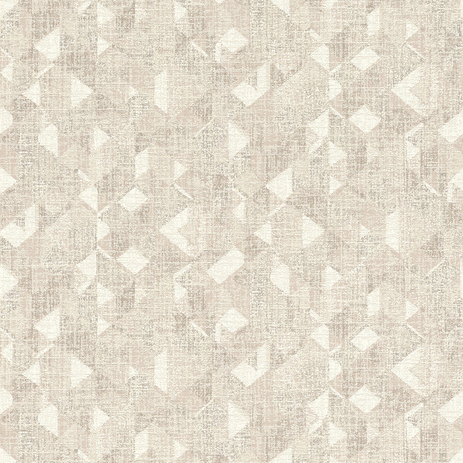 An elegant look that doesn't overwhelm. Triangles and squares intertwine on a light base and merge to create new shapes. This wallpaper is stylish and striking in various shades of beige with an interesting, vibrant texture and a silvery shimmer in the background.