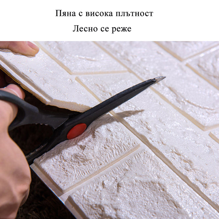 С този 3D панел лесно, ефективно и икономично ще обновите стените в дома си. Просто отлепете задния слой и залепете на стената – не е нужно закупуването на допълнително лепило. Повърхността от еластична пяна с висока плътност не пропуска вода, позволява лесно почистване и лесно може да бъде изрязана според нужната форма и размер – просто с ножица или макетен нож. Така стената без много усилия ще добие актуалния индустриален или лофт дизайн – тухли или различно оформени каменни модели.