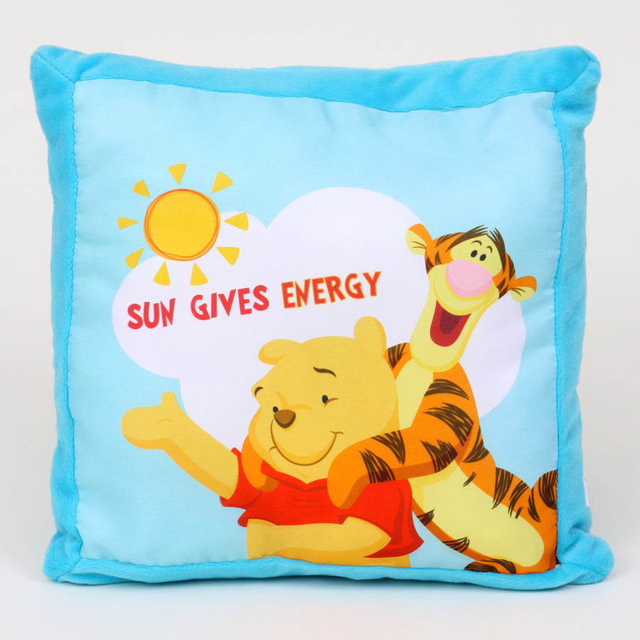 Бърз и лесен начин да добавите щипка цвят на дивана, леглото, или в детския кът. Възглавница с любимите на деца и възрастни Мечо Пух и Тигър. Свежи цветове в небесно синьо, жизнерадостно жълто и оранжево, с мека и приятна за гушкане материя.