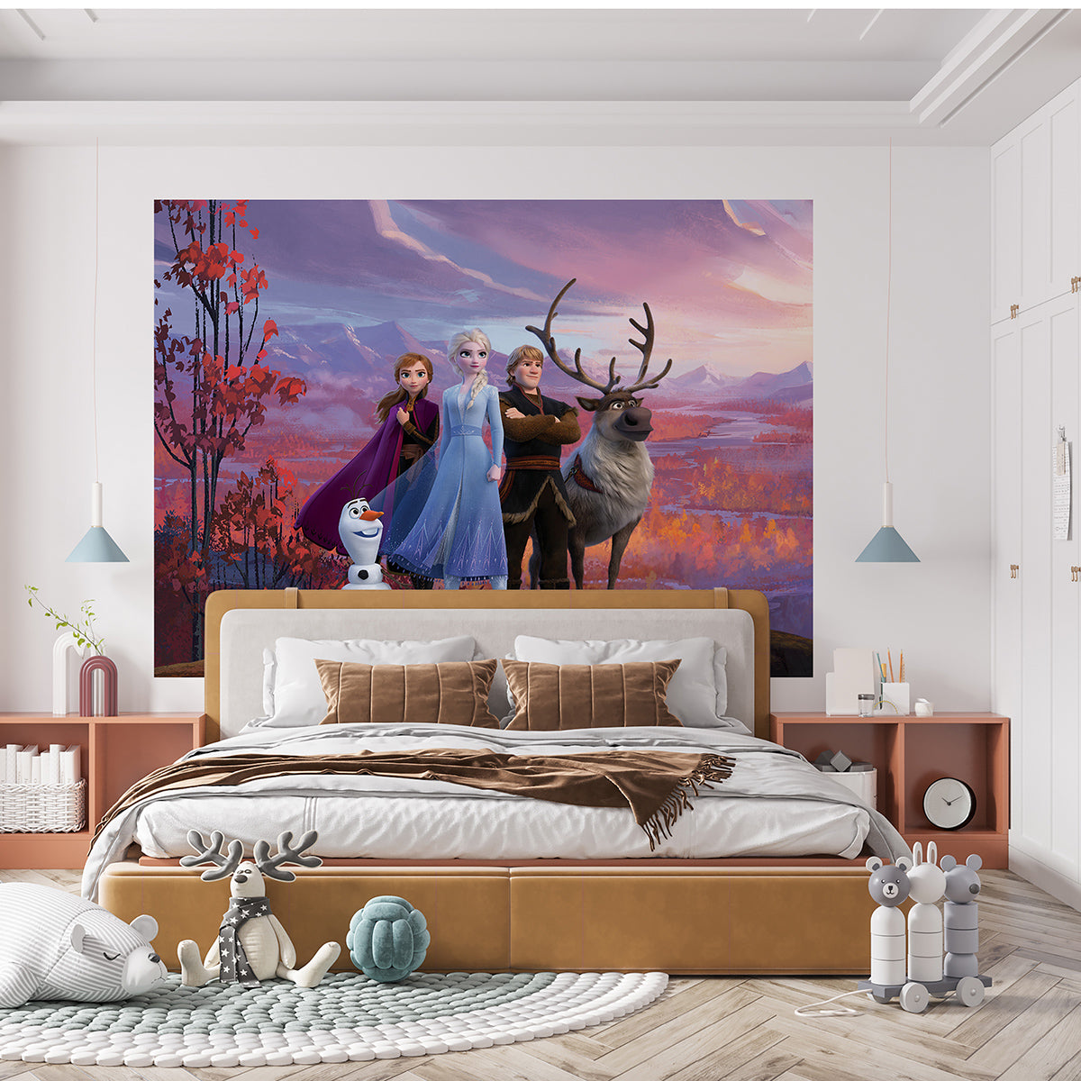 Детски фототапет с любимите герои от магичния свят на Disney е перфектното решение за декорация на стаята на Вашето малко съкровище. Висококачествен дигитален печат с детайл и цветове, създаващи едно наистина приказно пространство за забавление и игра. Създайте индивидуална атмосфера с минимални усилия – получавате избрания дизайн в оригинална защитна опаковка, включваща лепило и инструкция за монтаж.