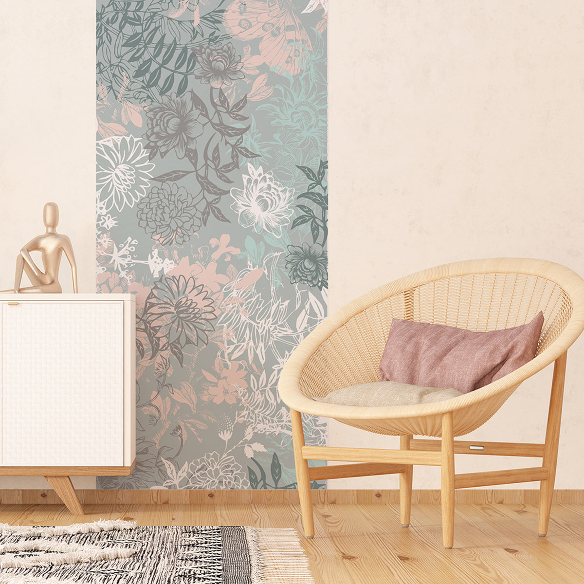 Фототапет Премиум 90/270 см Цветя сиво вертикал