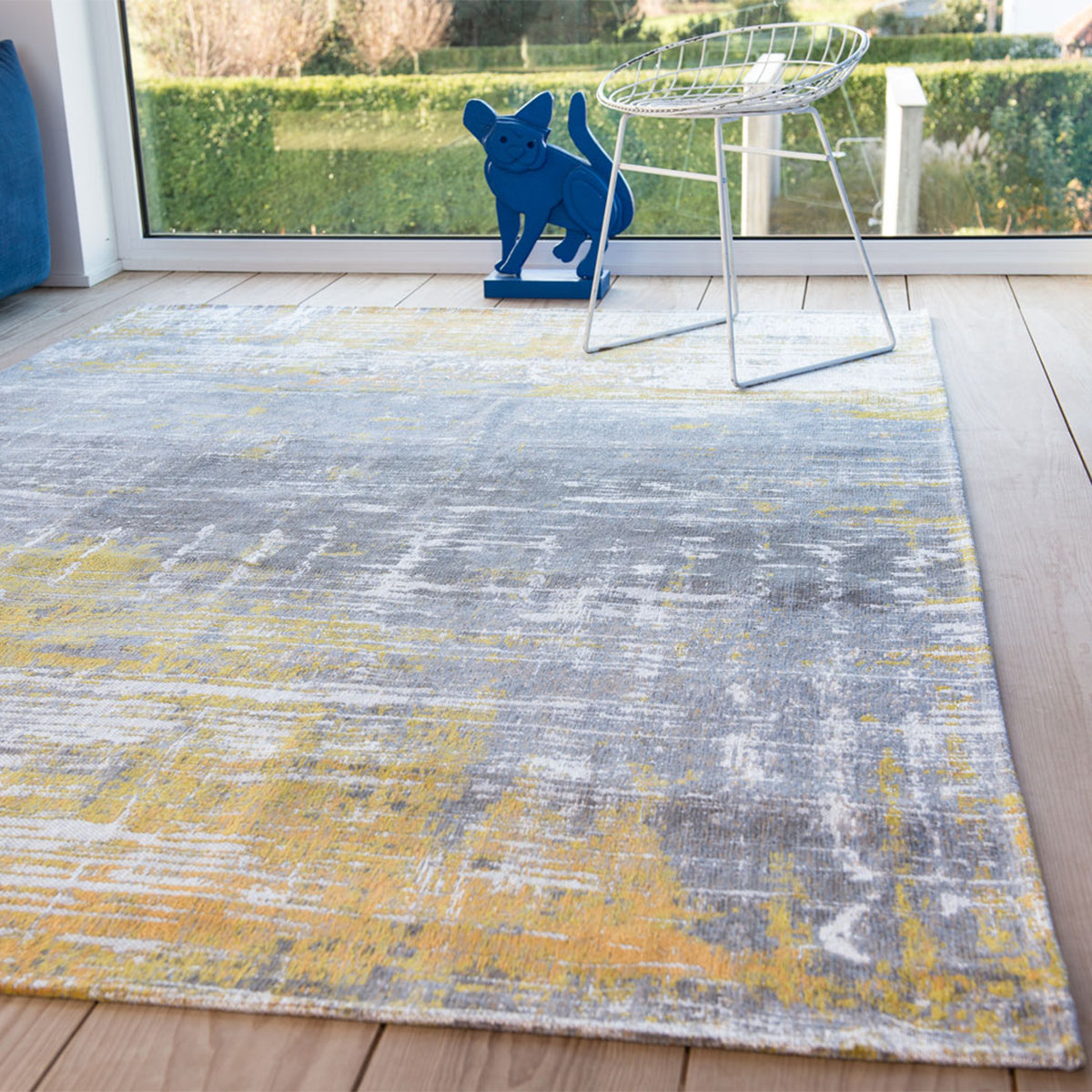 Жакардов Килим Слънчев Морски Бряг - дизайн, вдъхновен от модерното изкуство. И не само - от пясъчните брегове на Ню Джърси и Лонг Айлънд, брулени от зимните бури, създаващи вълнички и ивици по пясъка, сякаш абстрактни картини. Цветовете тук придават усещане за уникалност.