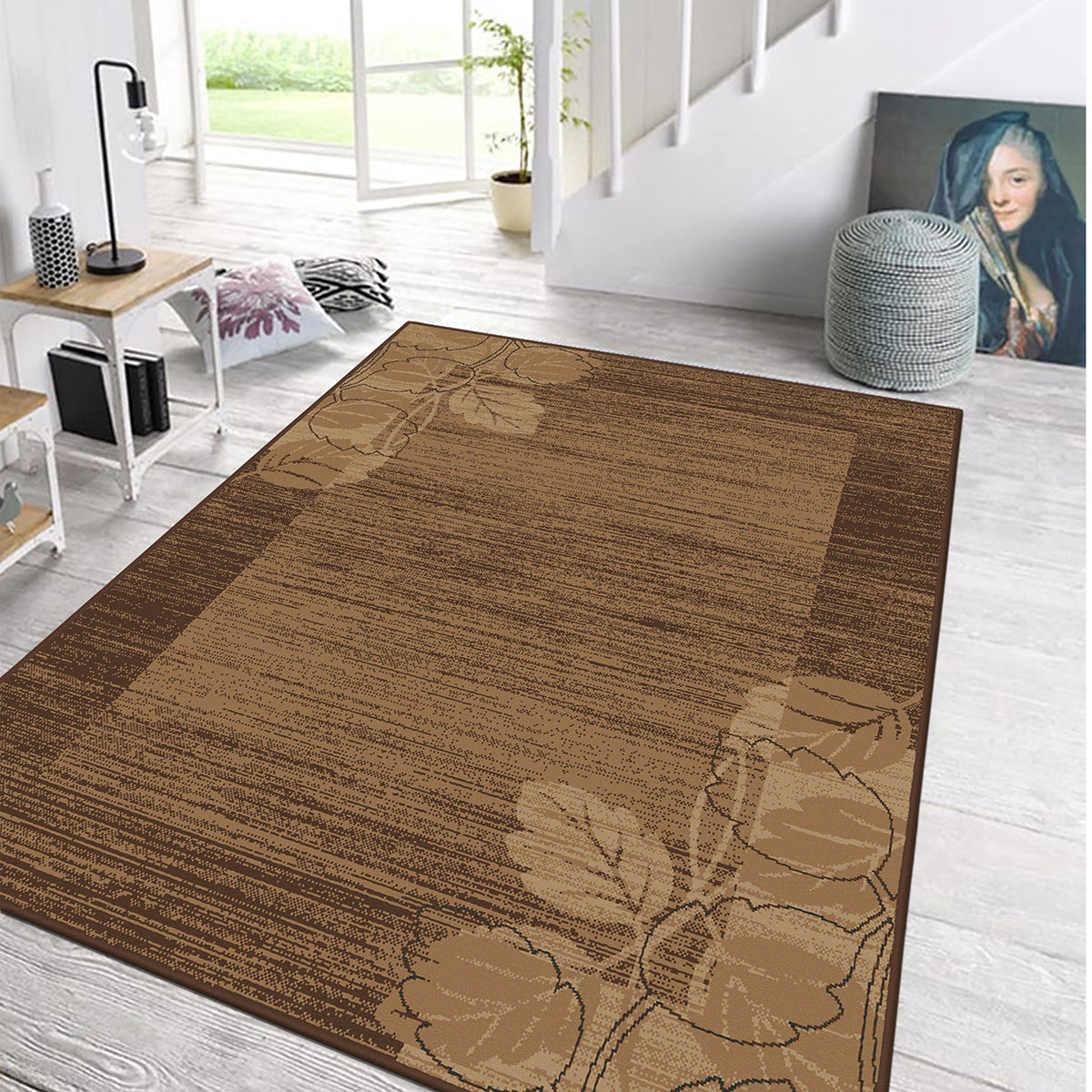 Бюджетен Килим Lanu Рамка листа Кафяво