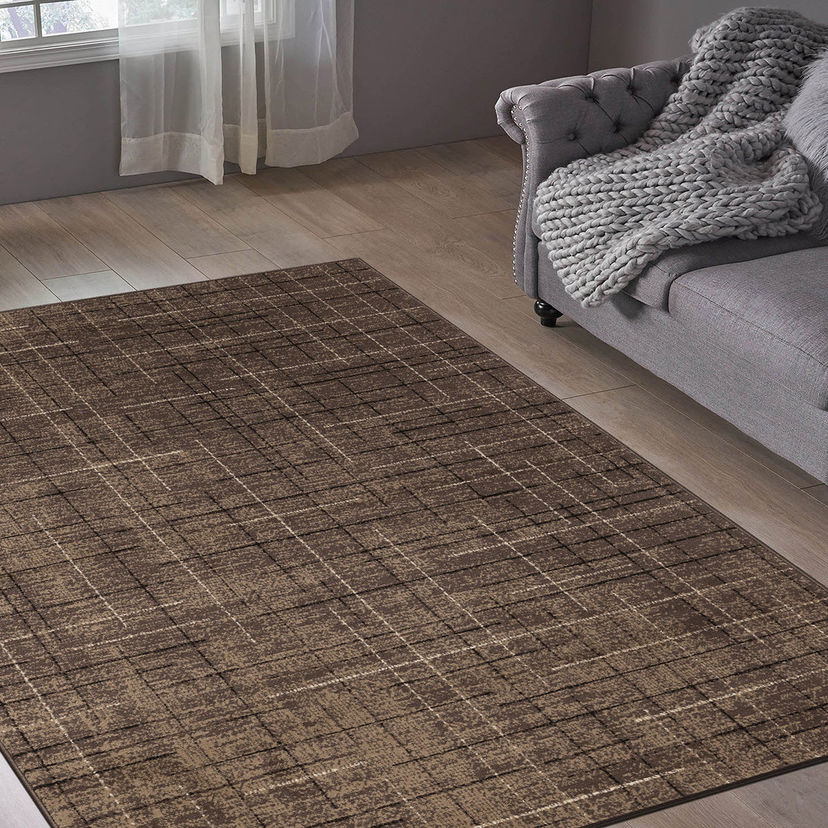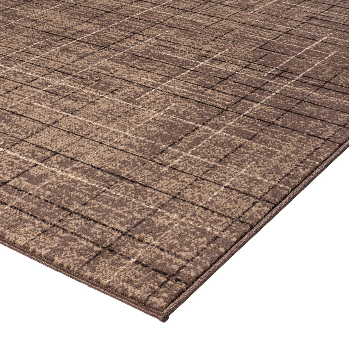 Килим с модерен дизайн и винтидж акцент, в топло кафяво с фин меланж, преливащ меко нюансите в отделните елементи.