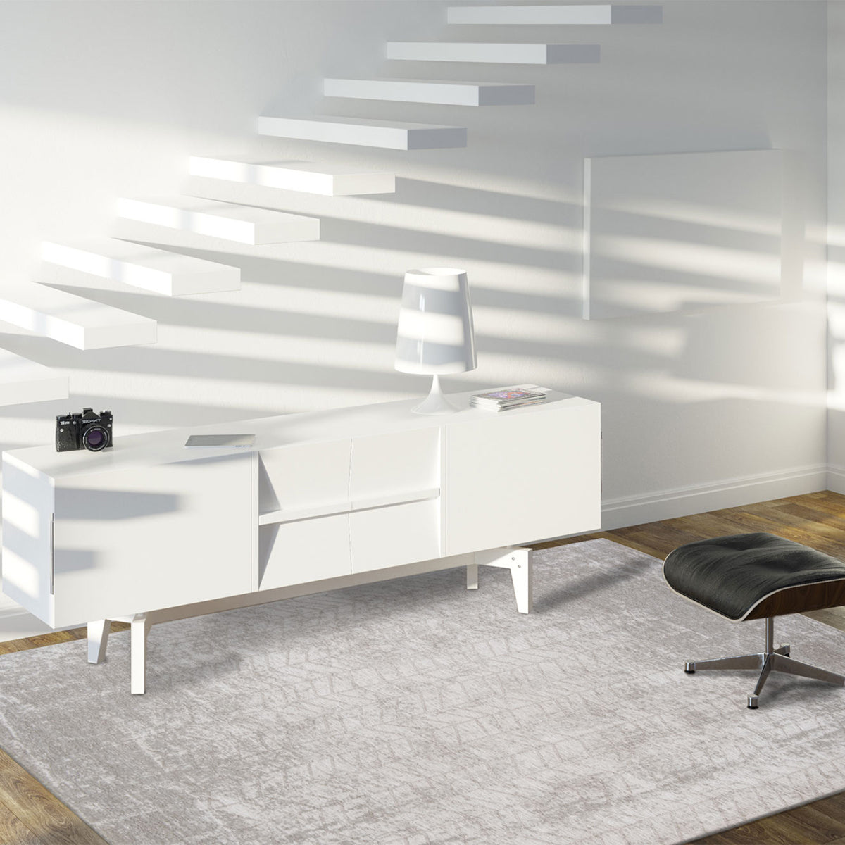 Избледнелият ефект с леки контрасти прави този килим толкова интересен за разглеждане и размисъл. Килимът Стълбата на Яков Сребристо представя нелекото, но вълнуващо изкачване по социалната стълбица. Това е начинът, по който рекламната индустрия си представя обществото: повече, по-добро, по-високо, по-богато... Но изкачването може да бъде трудно, дори ако стъпалата блестят.