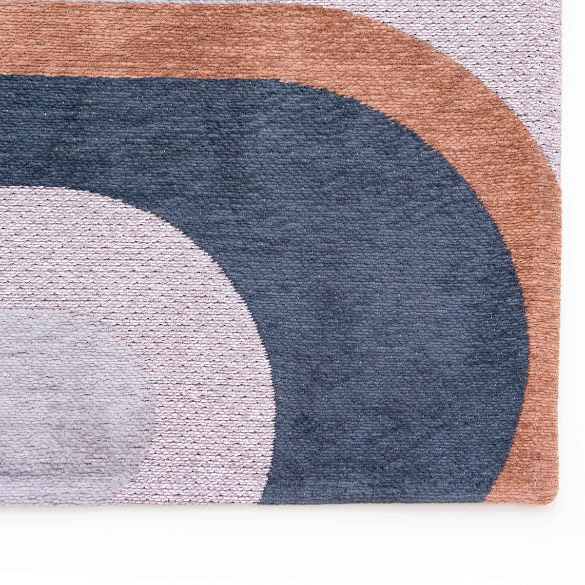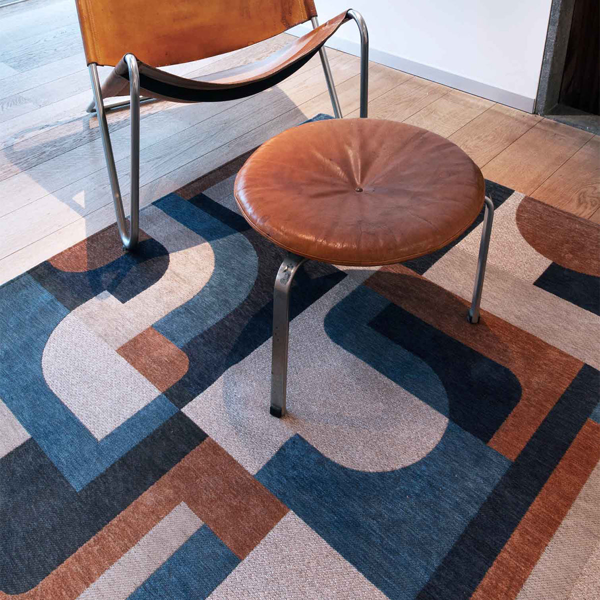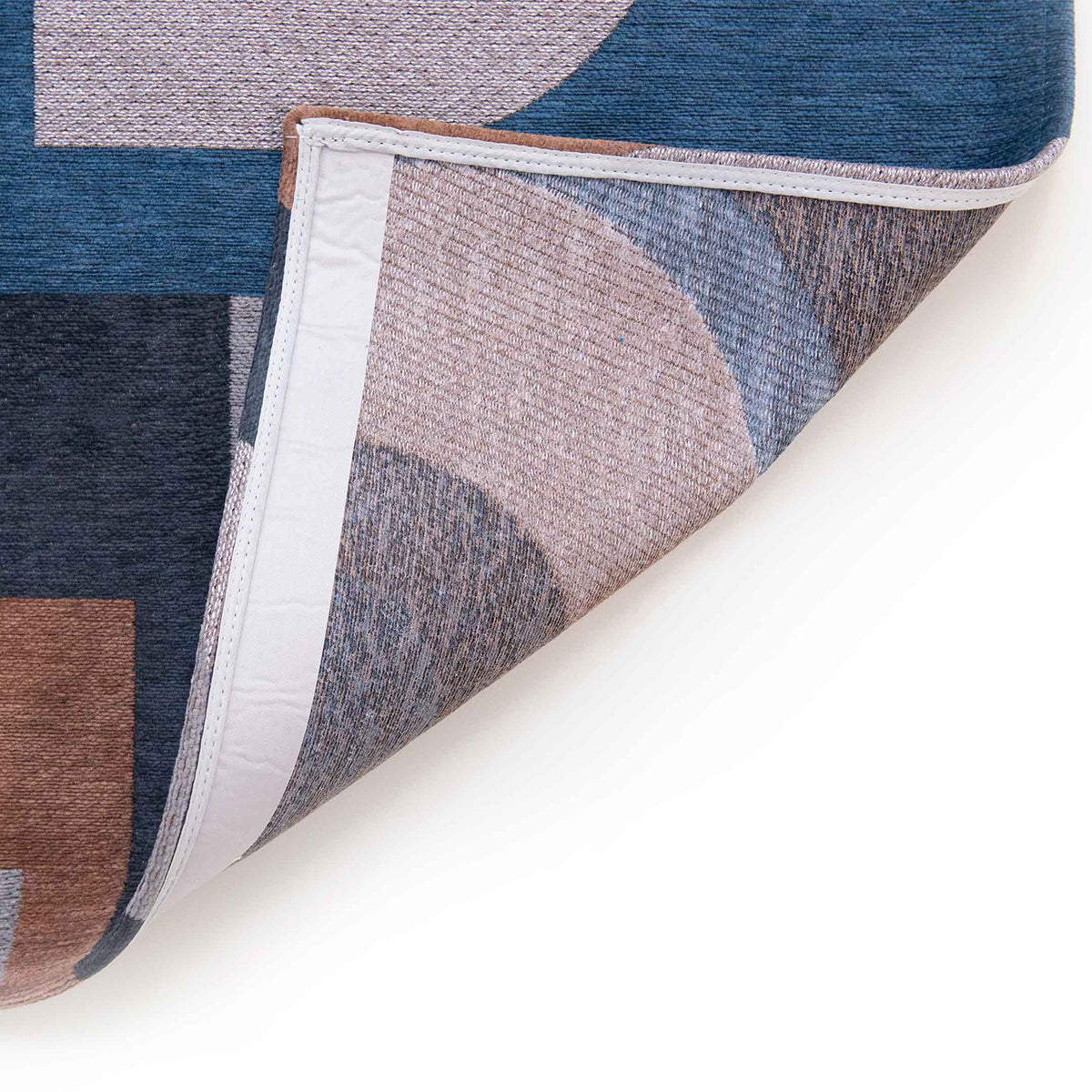 Премиум Жакардов Килим Геометричен ритъм синьо-кафяво