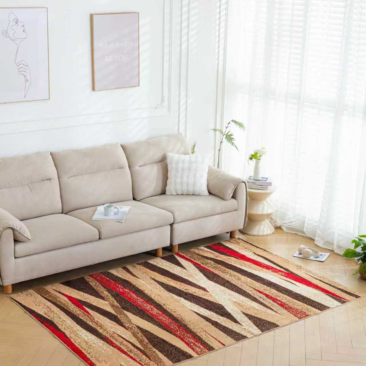 Мокетен Килим Лооп Черти Бежово-кафяво