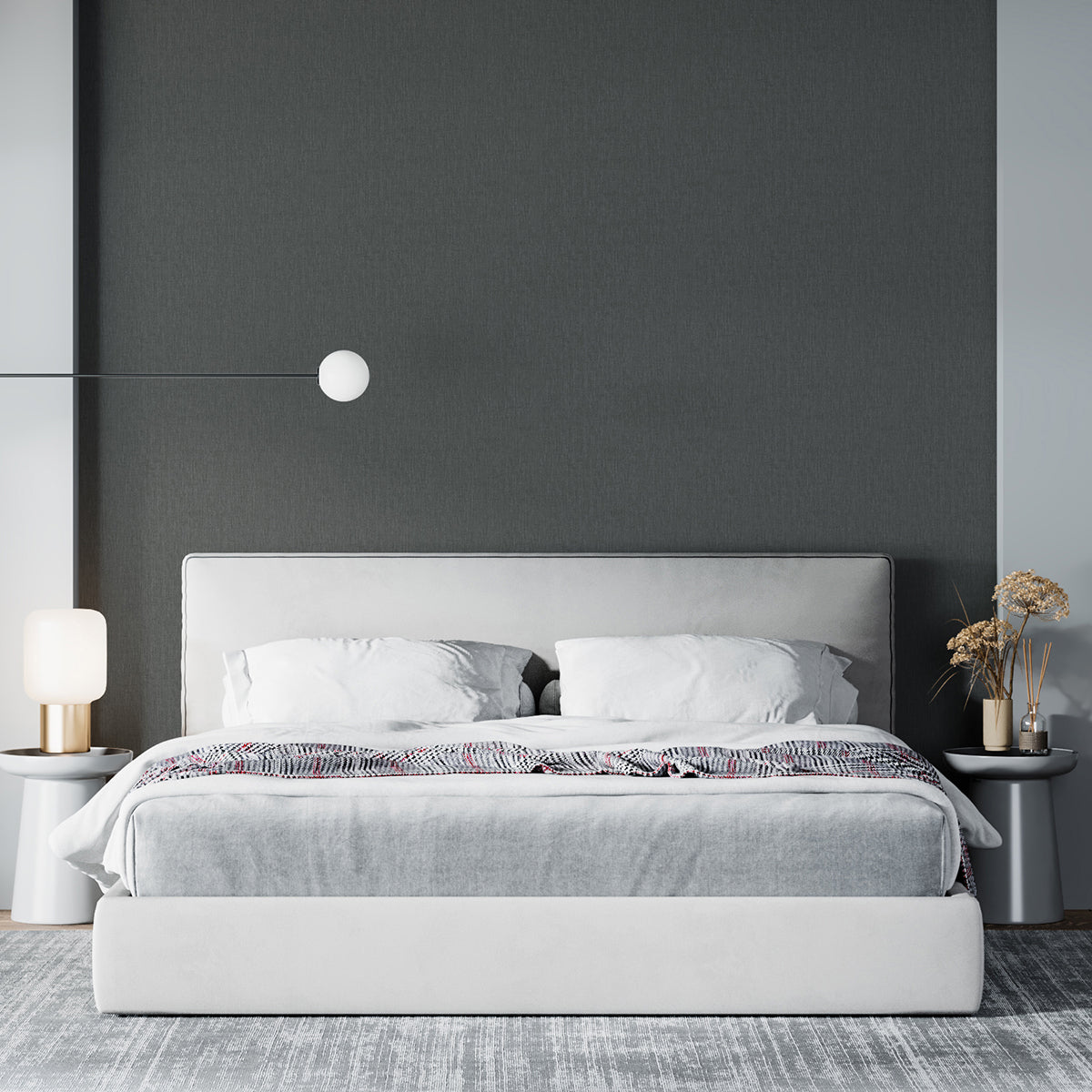 Елегантен едноцветен тапет със структура на фин ленен плат, подходящ за комбиниране с флорални и геометрични тапети от колекцията.
