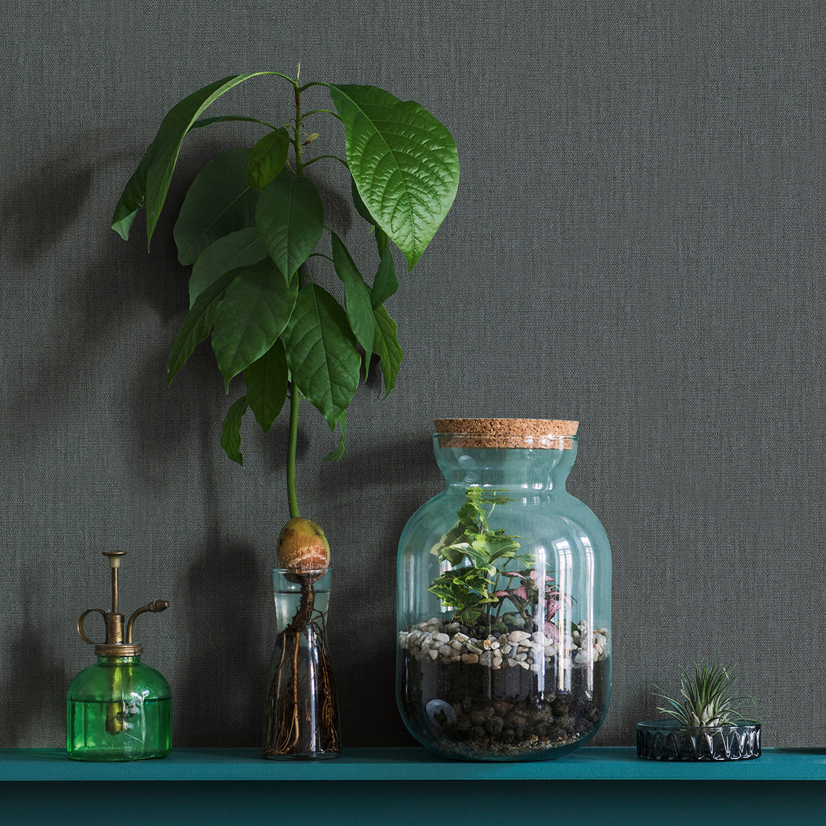 Текстилен ефект Тапет Едноцветен Плат Антрацит Ботаника