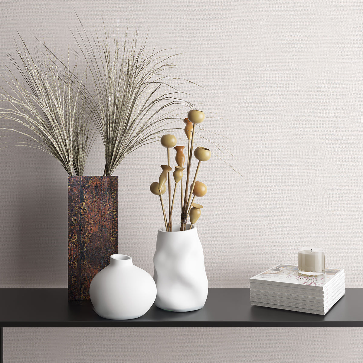 Елегантен едноцветен тапет със структура на фин ленен плат, подходящ за комбиниране с флорални и геометрични тапети от колекцията.
