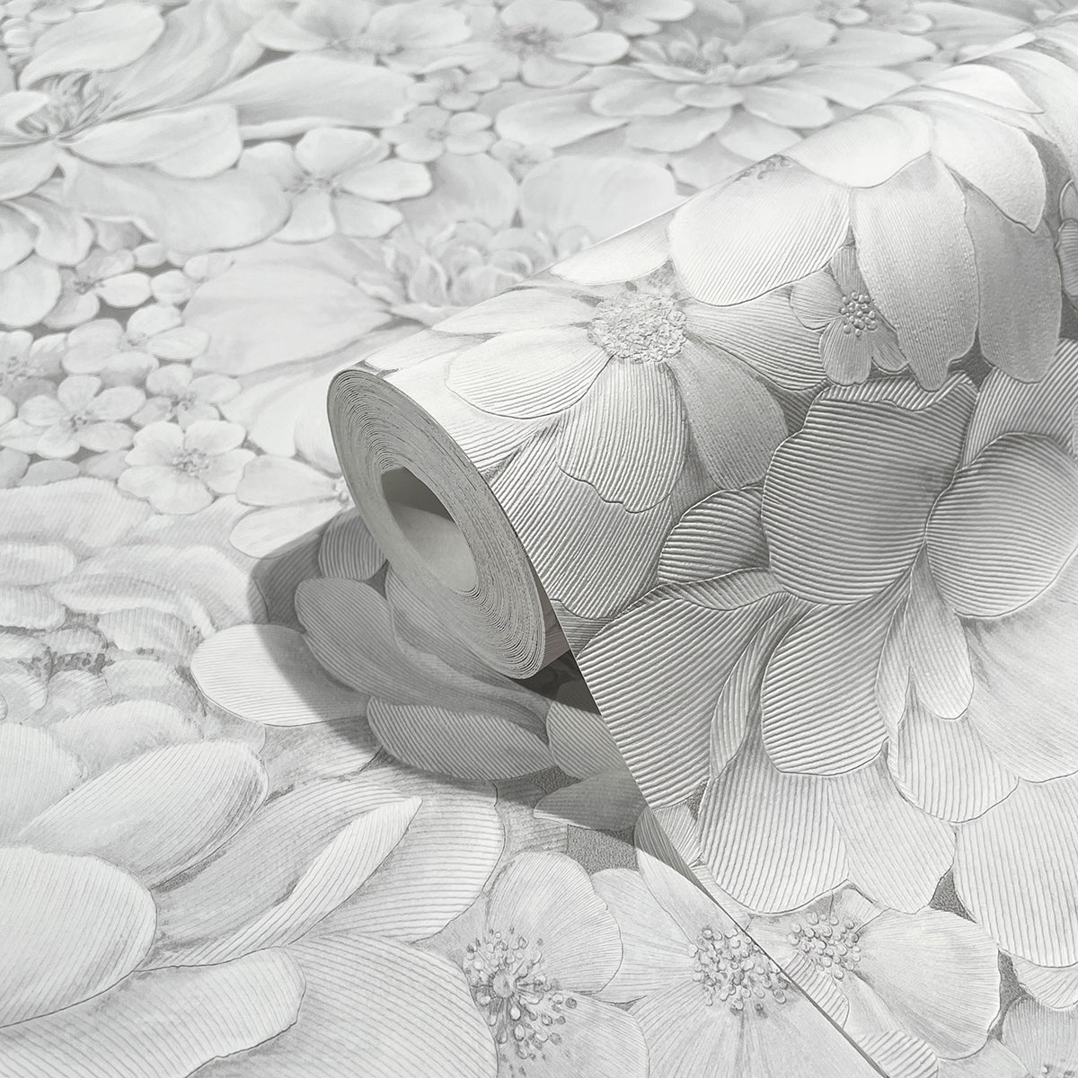 Текстилен ефект Тапет Цветя Цветна Градина Сиво Ботаника