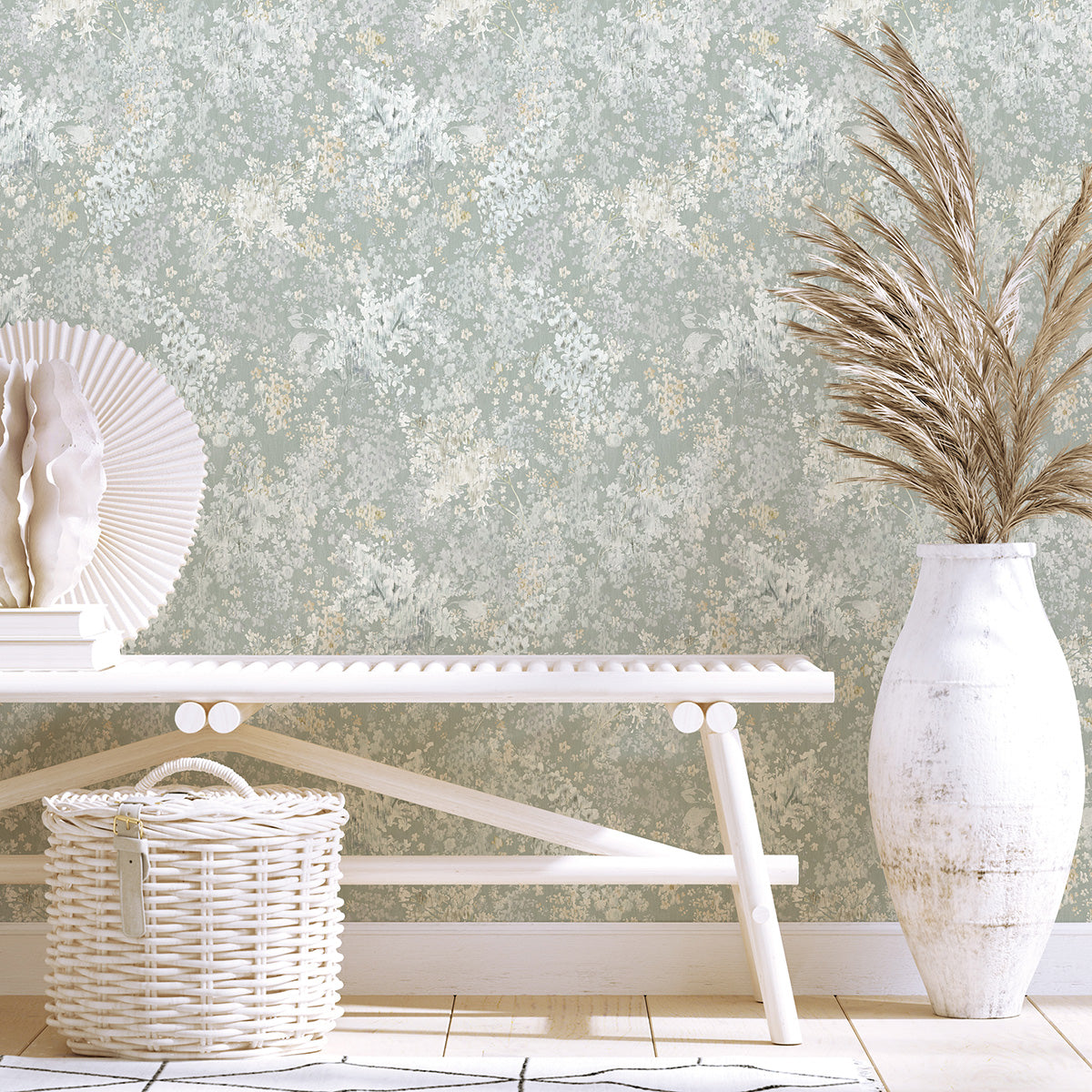 Високоустойчив Тапет Акварелни цветя Зелено Еден