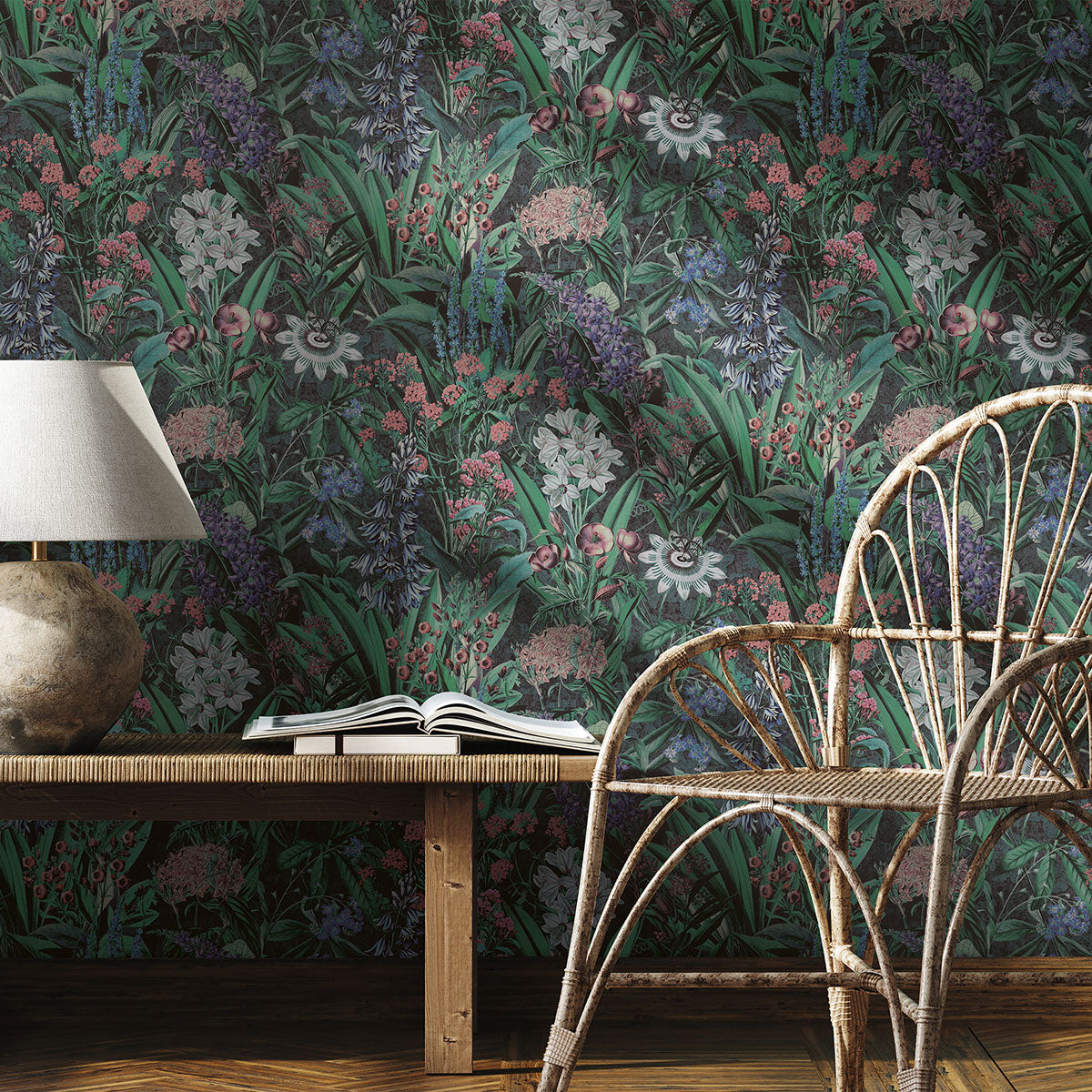 Незабравка, календула, омайниче – цялата свежест на планинската поляна в хладното августовско утро се пренася на вашите стени с този флорален тапет. Фонът напомня неравната повърхност на скалите. Комбинирайте с едноцветен тапет със същия дизайн от колекцията.