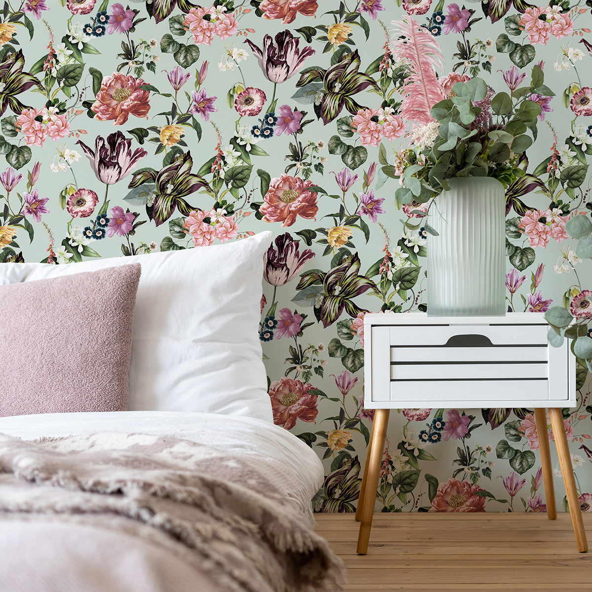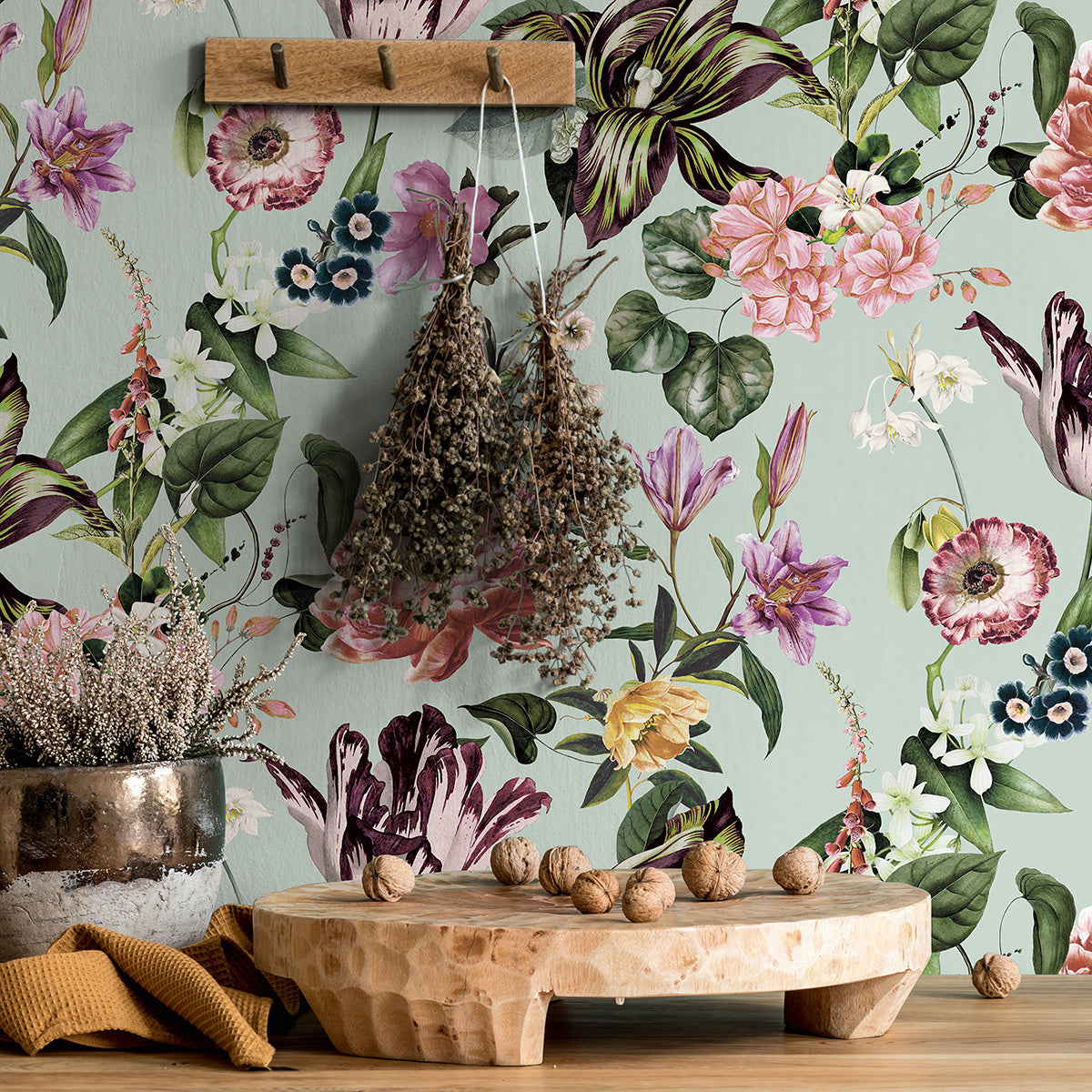 Пищните съцветия на разцъфнали сякаш в магическа градина цветя могат бързо и лесно да разцъфнат и на вашата стена. Поставете като акцент в спалнята или хола, в комбинация с едноцветен тапет от колекцията.
