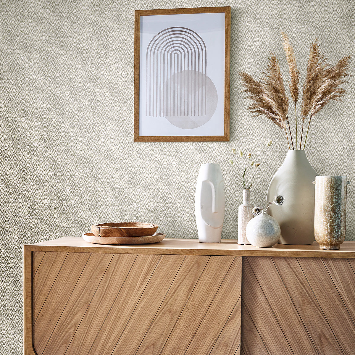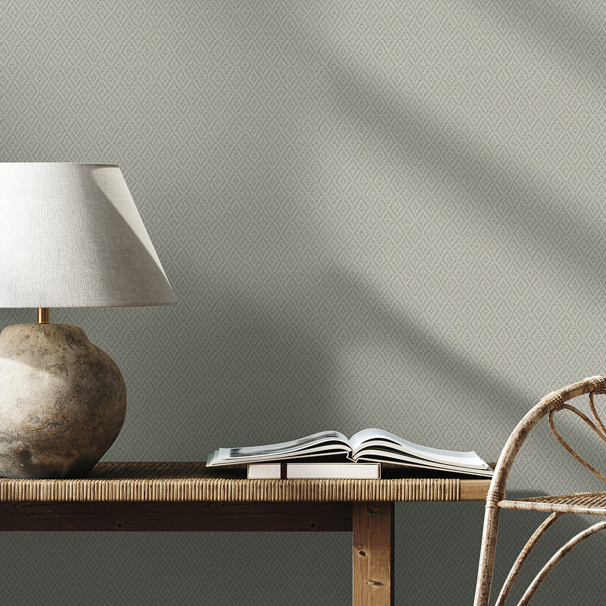 Стилен едноцветен тапет с топла структура на плетена материя. Визията и усещането за облечена в текстил стена създава усещане за уют и комфорт и носи топлотата на естествените материи. Неутралната цветова гама дава възможност за лесно съчетаване с мебели и аксесоари от дърво, бамбук и други натурални материали – за дома, лятната вила или къщата на плажа.