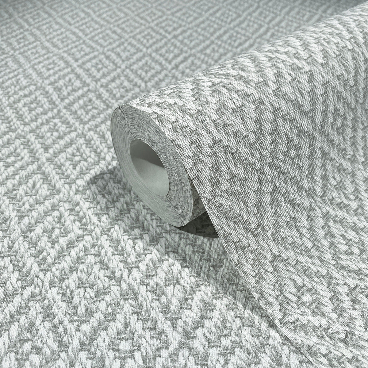 Текстилен ефект Тапет Плетиво ромб Светло сиво Еден