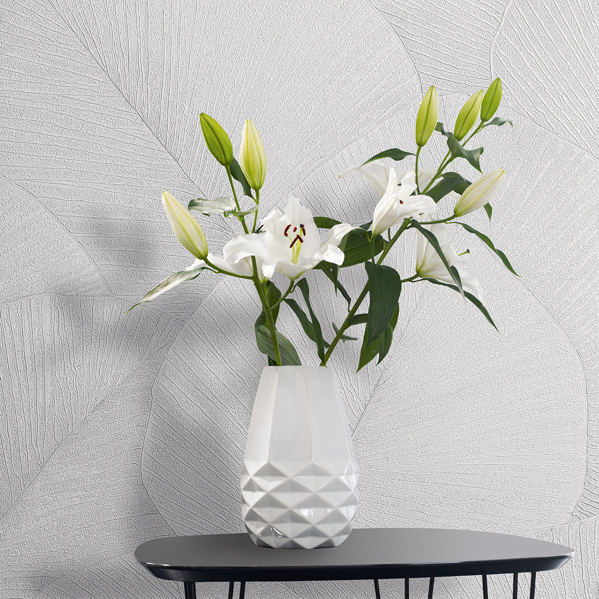 Високоустойчив Тапет Големи листа Бяло Кумано