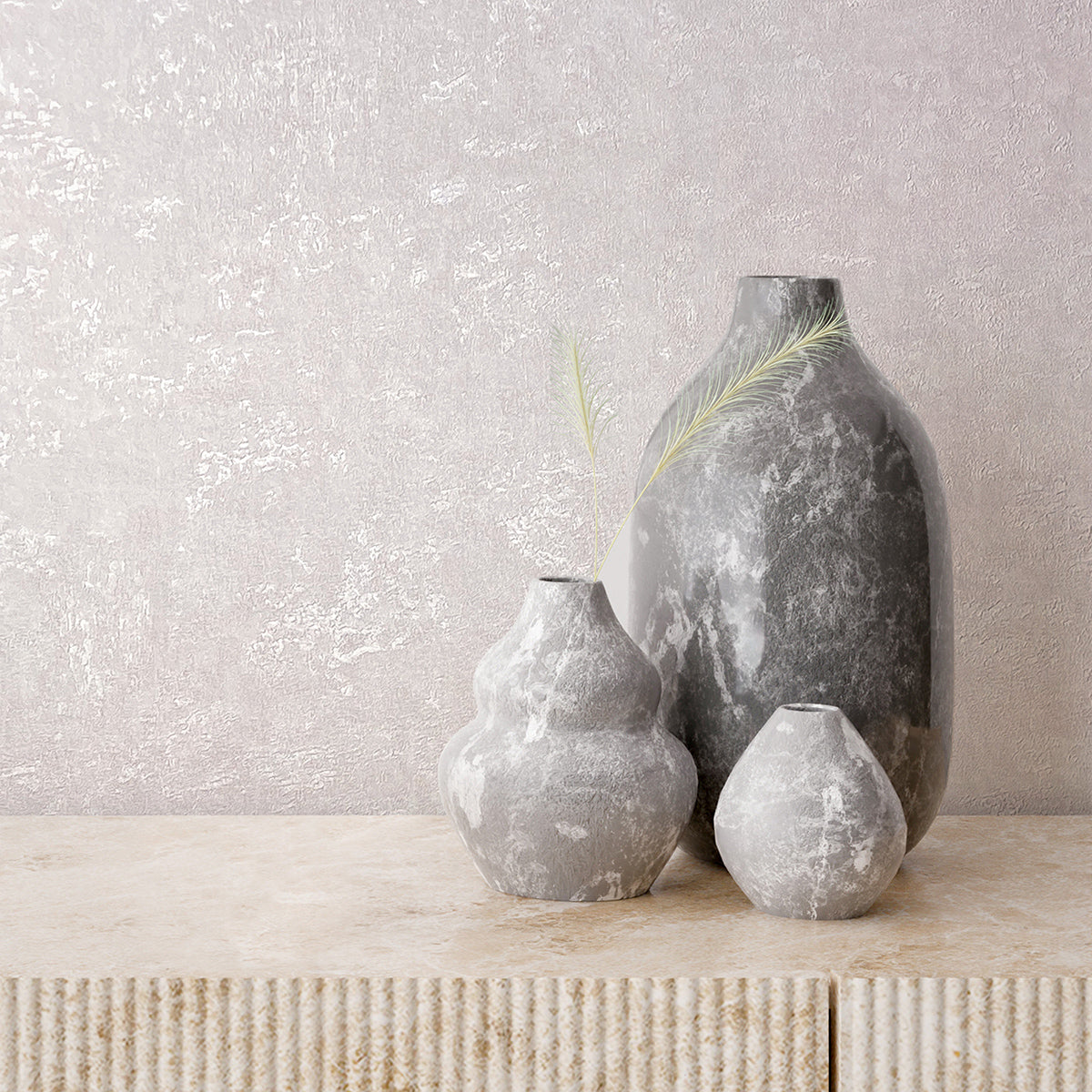 Модерен едноцветен тапет с ефекти и актуалната визия на мазилка, в елегантен нюанс, създаващ усещане за дълбочина. Може да се постави самостоятелно или да се комбинира с тапети и пана с мотив от колекцията.