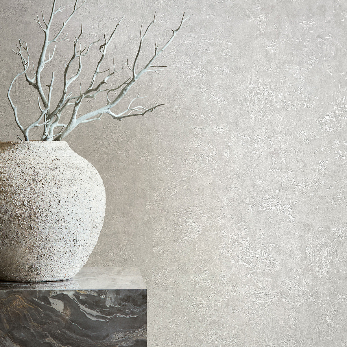 Модерен едноцветен тапет с ефекти и актуалната визия на мазилка, в елегантен нюанс, създаващ усещане за дълбочина. Може да се постави самостоятелно или да се комбинира с тапети и пана с мотив от колекцията.