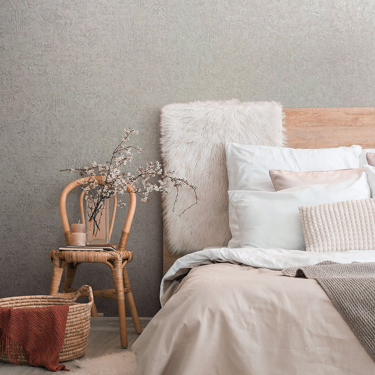 Модерен едноцветен тапет с ефекти и актуалната визия на мазилка, в елегантен нюанс, създаващ усещане за дълбочина. Може да се постави самостоятелно или да се комбинира с тапети и пана с мотив от колекцията.