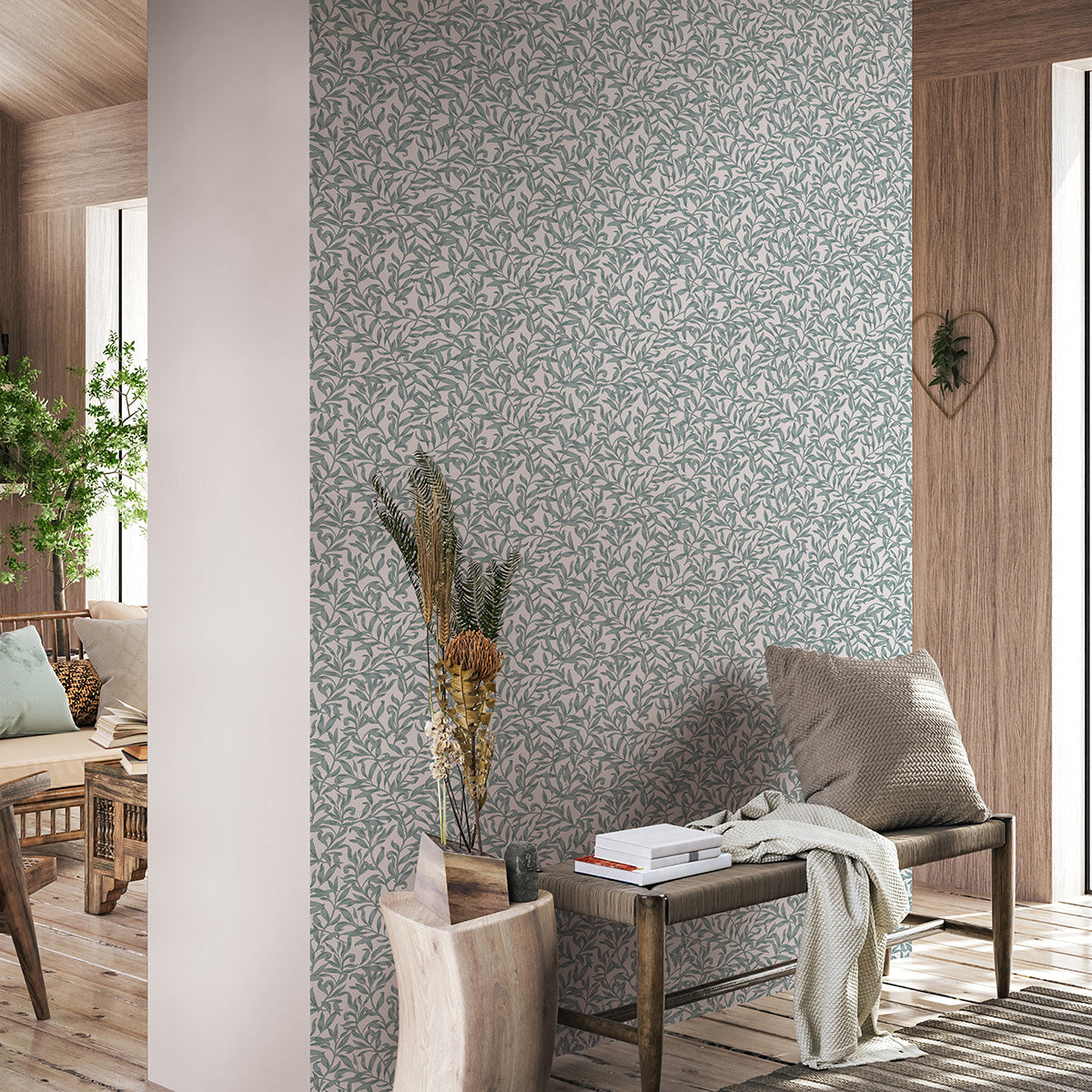 Еко Тапет Тюркоазени Листа Сиво бяло Наследство
