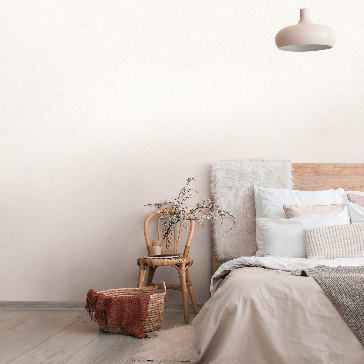 Светъл, неутрален тапет с фина, еднообразна текстура, която добавя деликатна дълбочина.