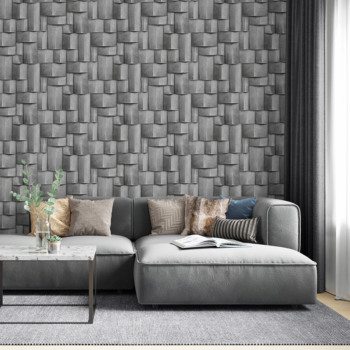 Винилов високоустойчив Тапет 3D Дървено пано Сиво Timber