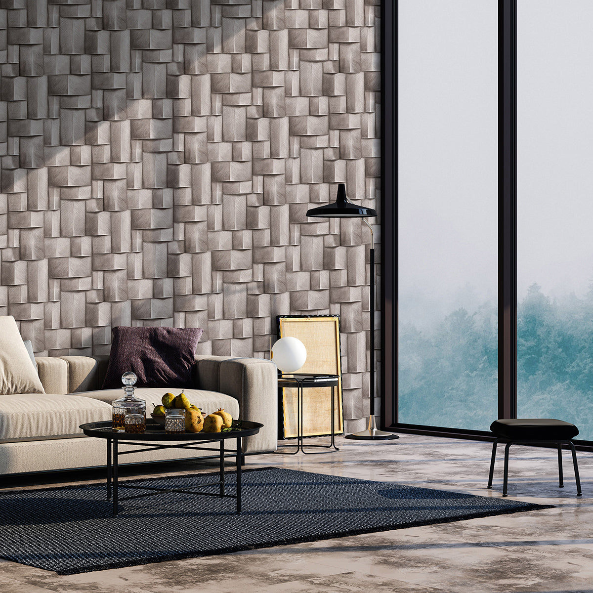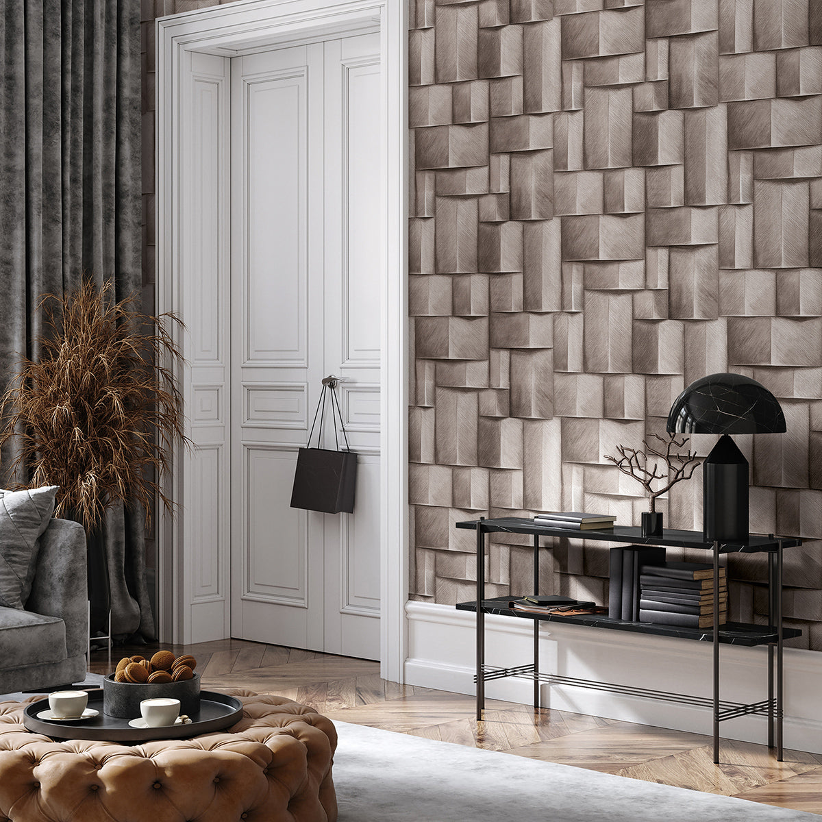Винилов високоустойчив Тапет 3D Дървено пано Таупе Timber