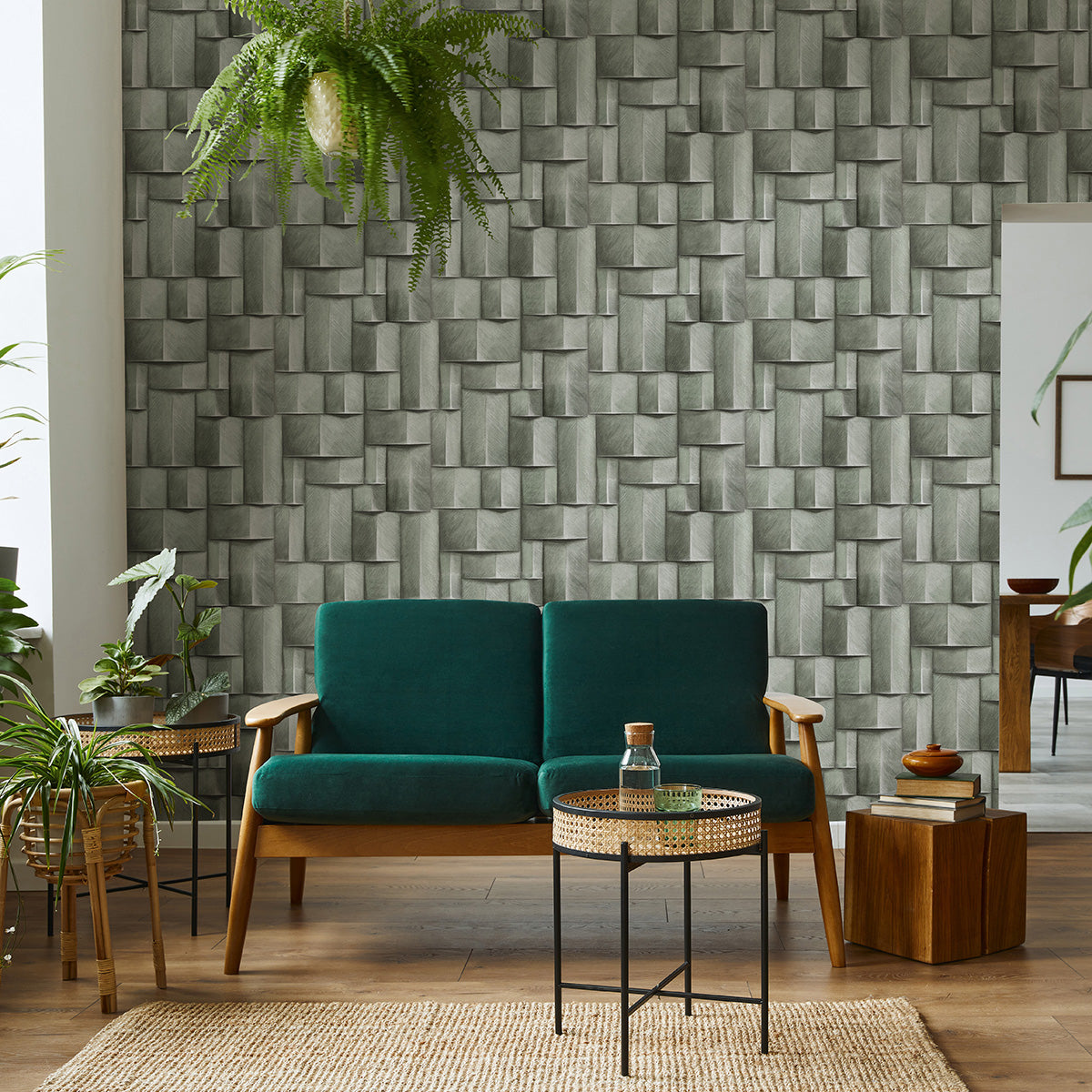 Винилов високоустойчив Тапет 3D Дървено пано Зелено Timber