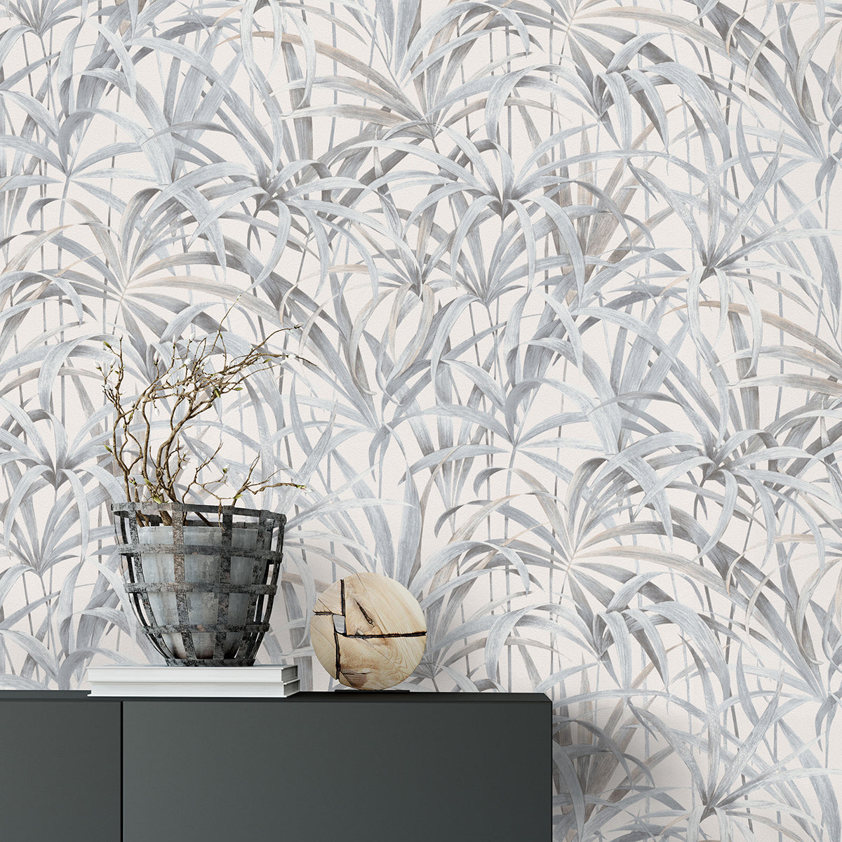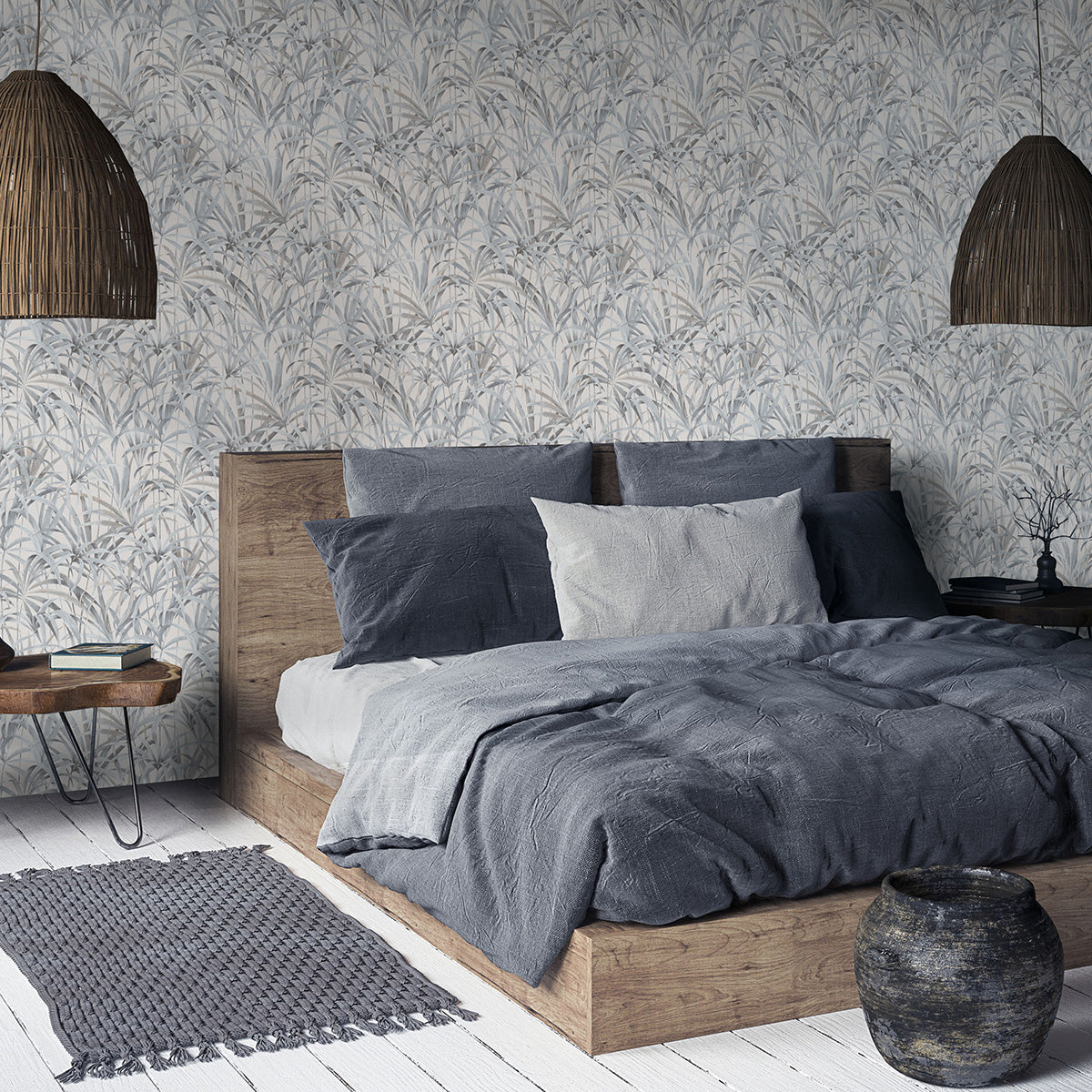 Тревите, разлюлени от вятъра върху този флорален тапет в бял, сив и кафяв цвят, и елегантните тонове образуват хармонично цяло в дизайна, издържан в стилистиката на актуалния стил джапанди – комбинация от хладната скандинавска красота на севера и загадъчната мистика на Япония.