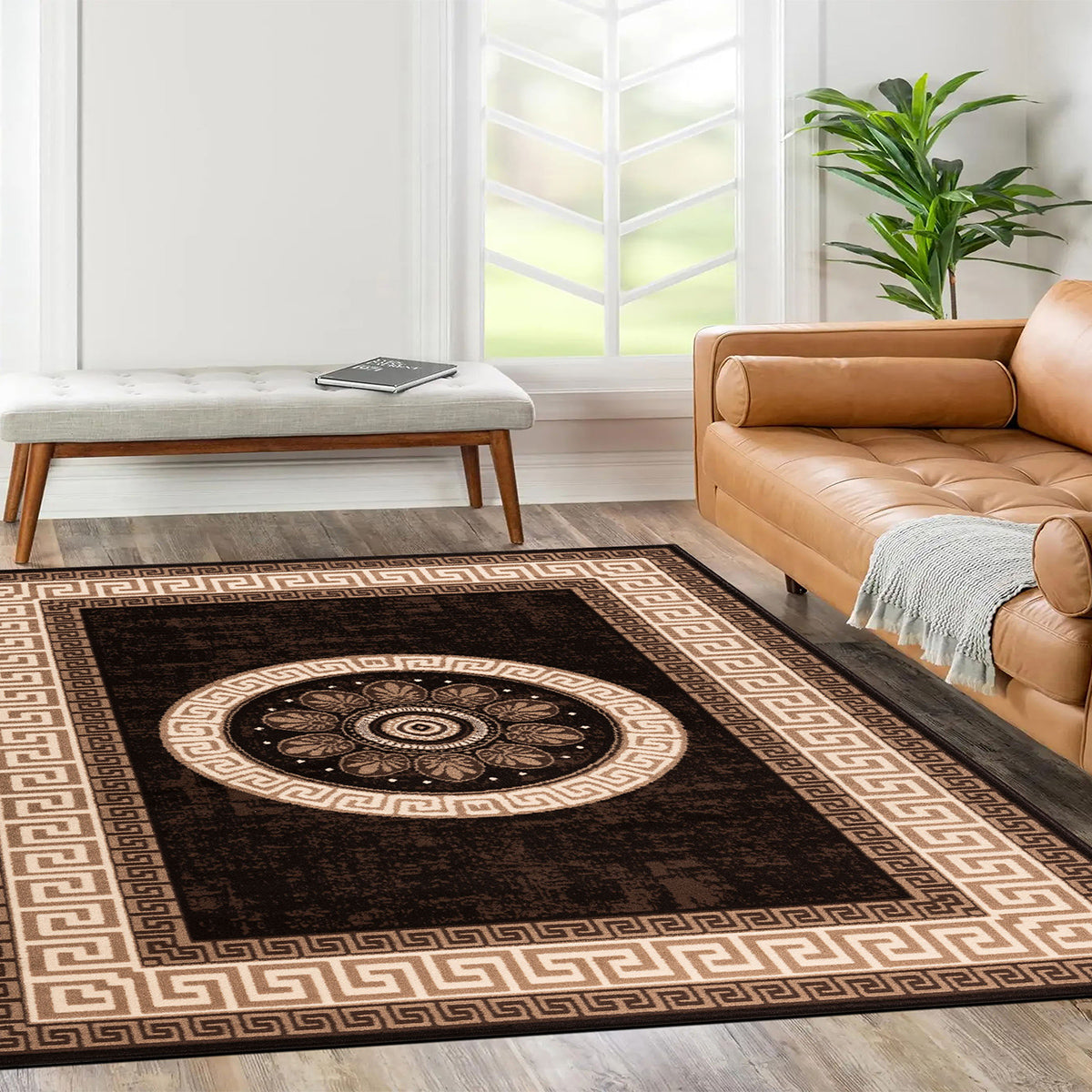 Бюджетен Килим Lanu Меандър рамка Кафяво