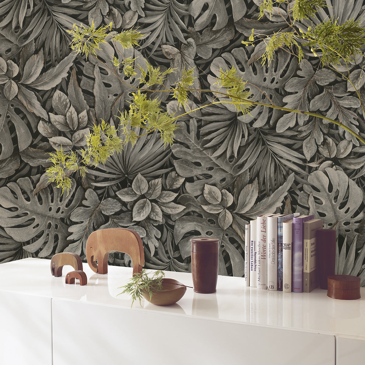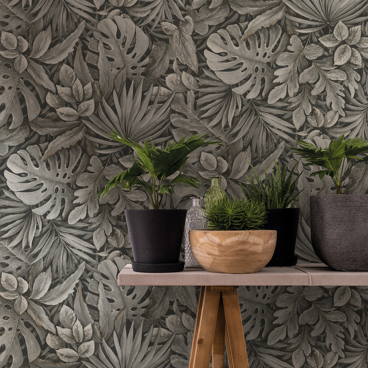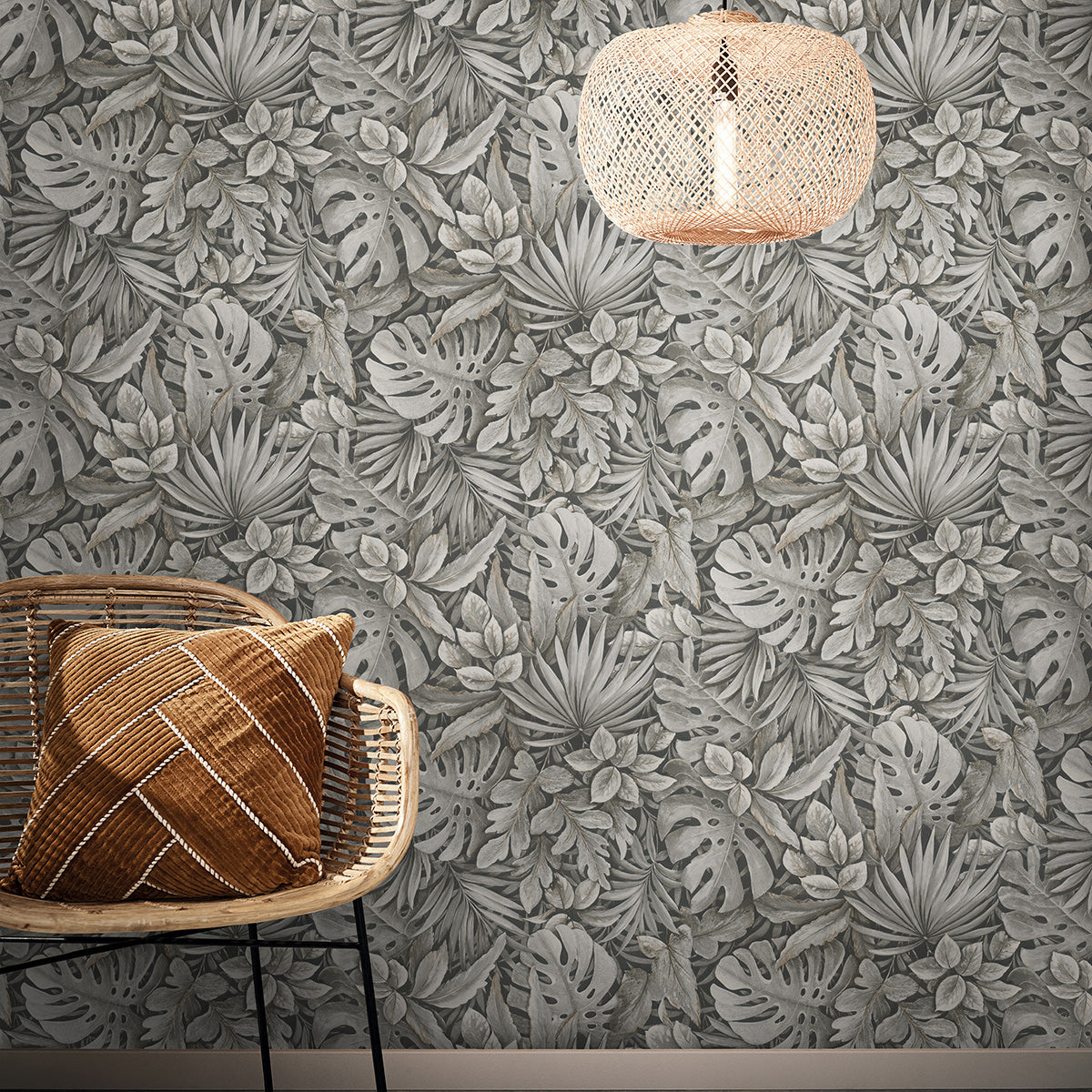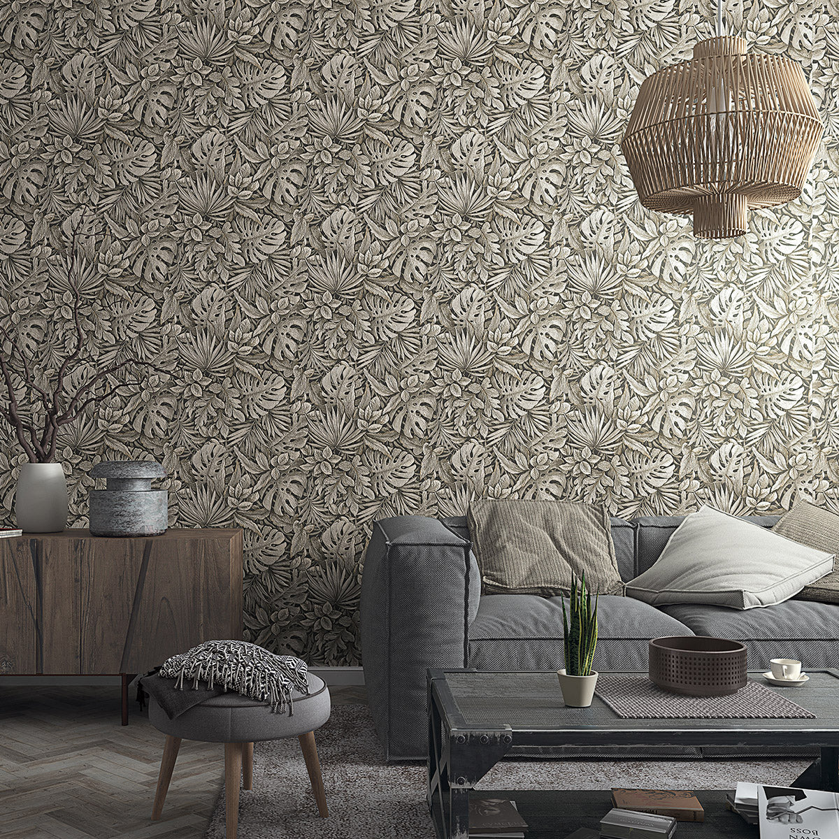Пищни, реалистично изобразени листа на любими растения плътно покриват този луксозен флорален тапет. Детайлите са така умело изваяни, че усещането за „градска джунгла“ - вече обуздана, и все пак пълна с енергията на жизнените сокове, е съвсем реално.