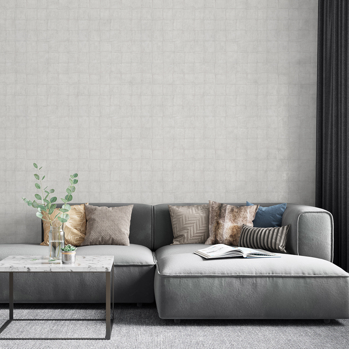 Текстилен ефект Тапет Мазилка Квадрати Сиво-бяло Ботаника