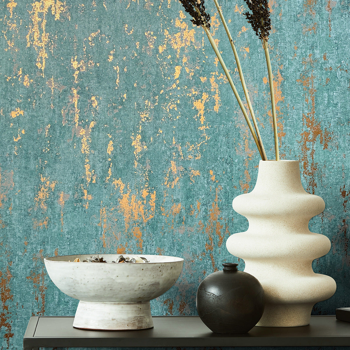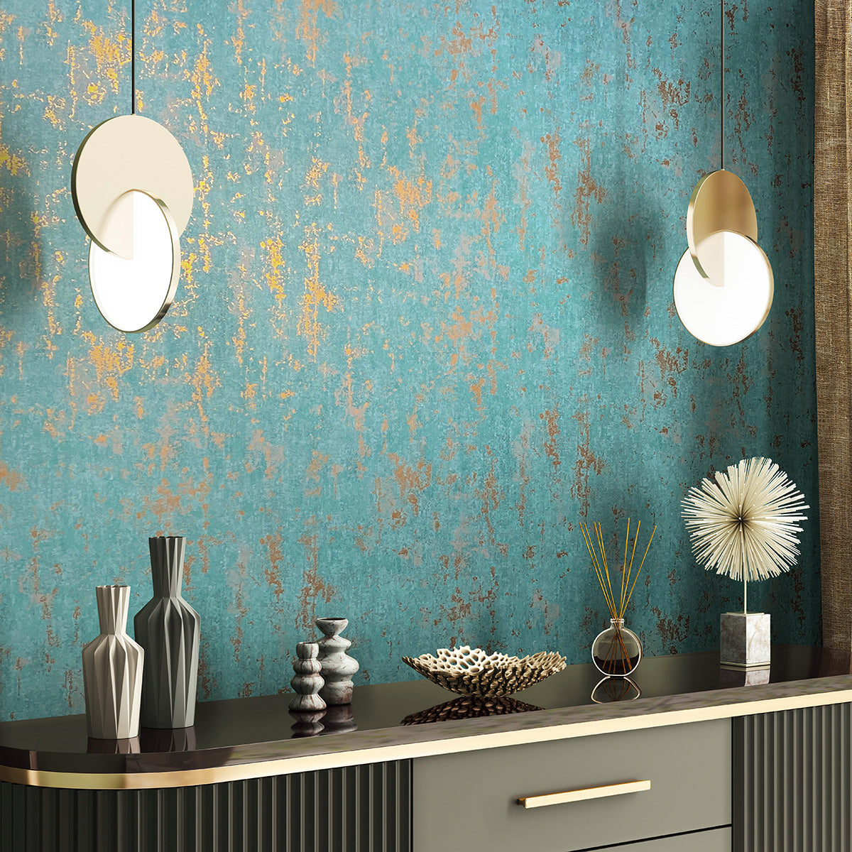 Луксозен Тапет Винтидж мазилка Тюркоазено-златно City Romance