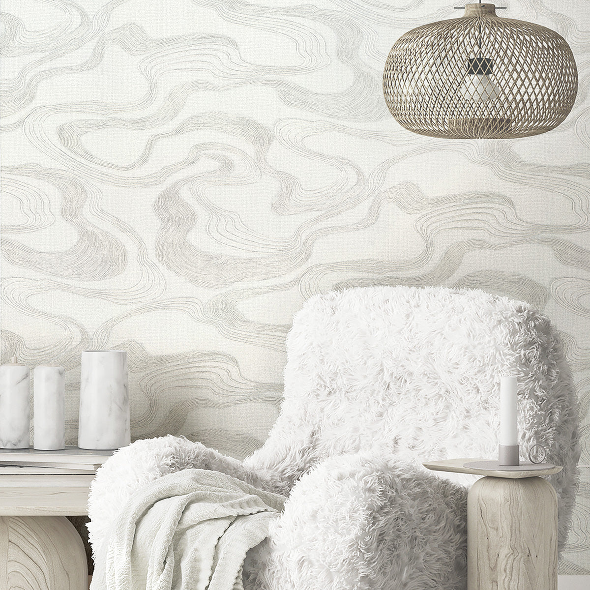 Тапет с дизайн, издържан в стилистиката на актуалния стил джапанди – комбинация от скандинавския уют на севера и изчистените линии на японското изкуство. Меките извивки на тънките, гланцирани линии наподобяват мистично стелещите се мъгли в ранното планинско утро. Фонът със структура на груб текстил допълва впечатлението и има меко, естествено въздействие. Този фон се предлага в колекцията и като едноцветен тапет, подходящ за комбиниране с дизайна.