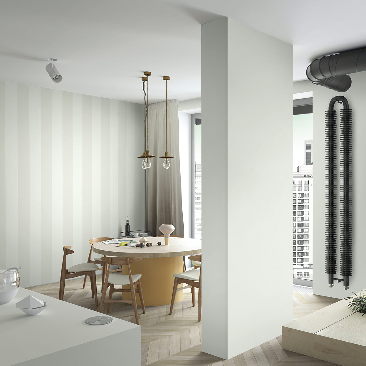 Тапет с дизайн райе, в нежни и светли, пастелни цветове. Класическа елегантност в акварелни нюанси.